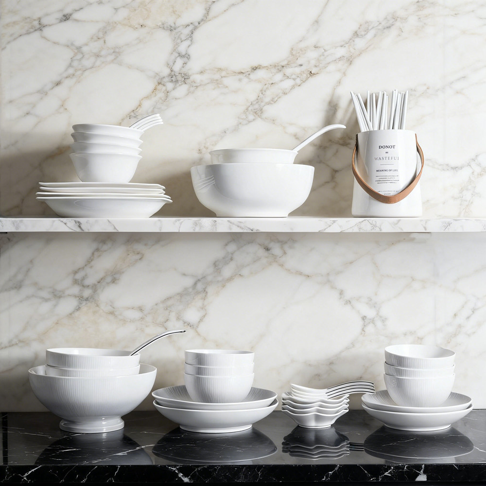 现代简约样板间厨房橱柜上下柜碗碟套装咖啡壶碟储物罐装饰品摆件