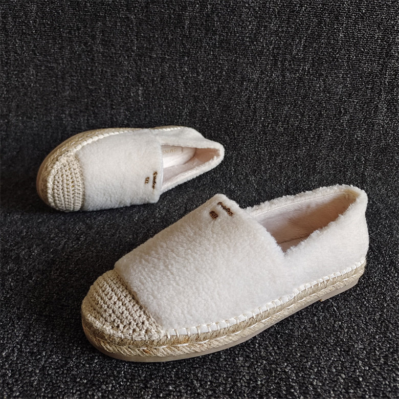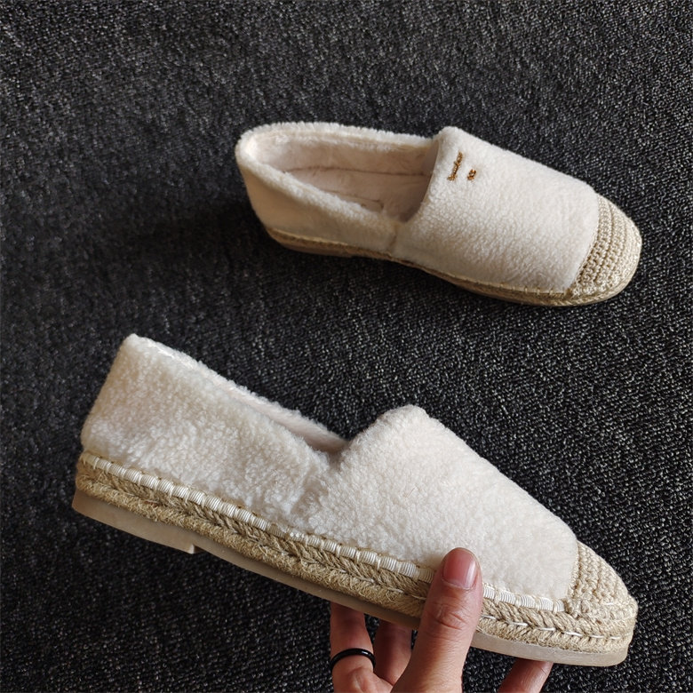 专柜断码撤柜新款女鞋平底休闲渔夫软底加绒保暖冬豆豆鞋拼接轻便