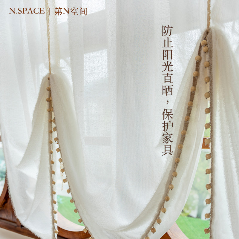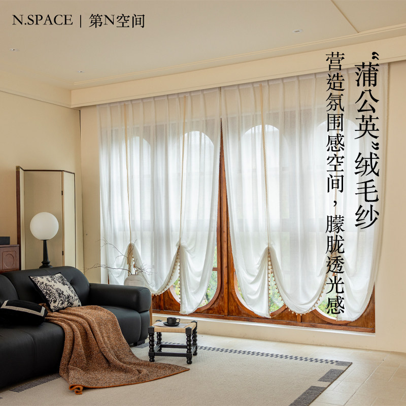 【蒲公英】毛绒纱帘白色窗帘透光微透人法式奶油风窗纱绒毛纱飘窗