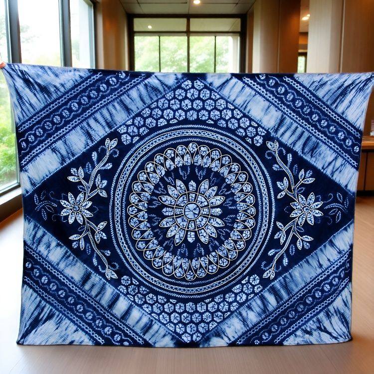 云南大理白族扎染纯棉桌布周城民族风纯棉扎染布料手工艺装饰背景
