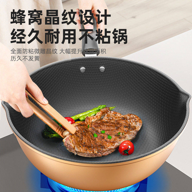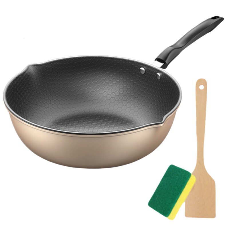 【蜂窝大容量】不粘锅双导流煎炒平底锅(送木铲+海绵擦)多规格