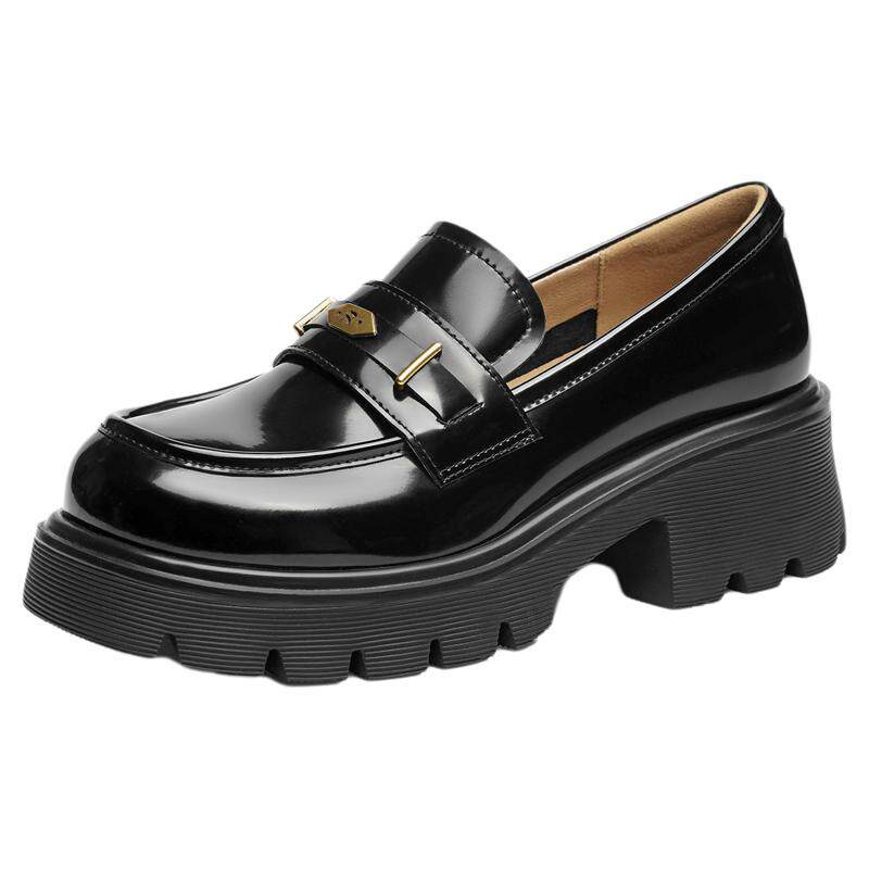 红蜻蜓厚底乐福鞋女春季新款一脚蹬女鞋增高单鞋英伦风黑色小皮鞋