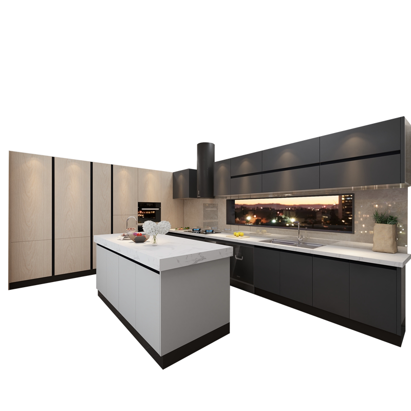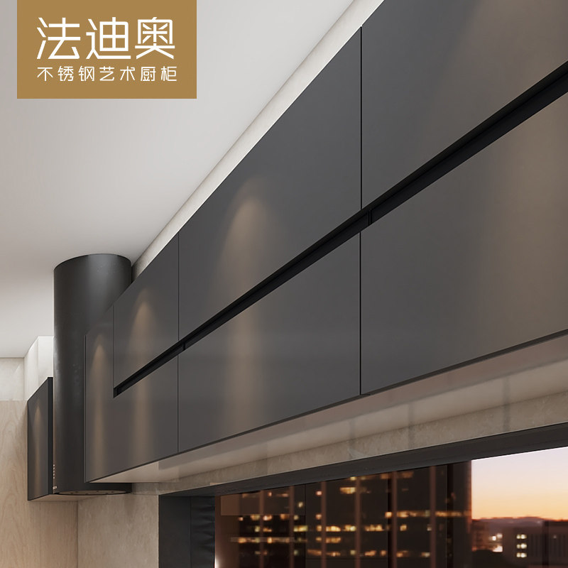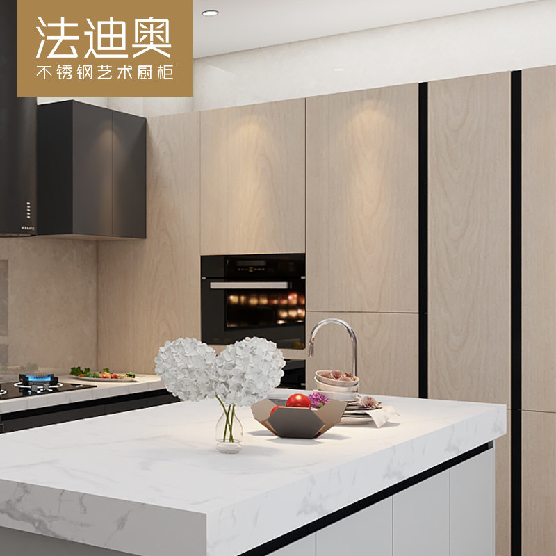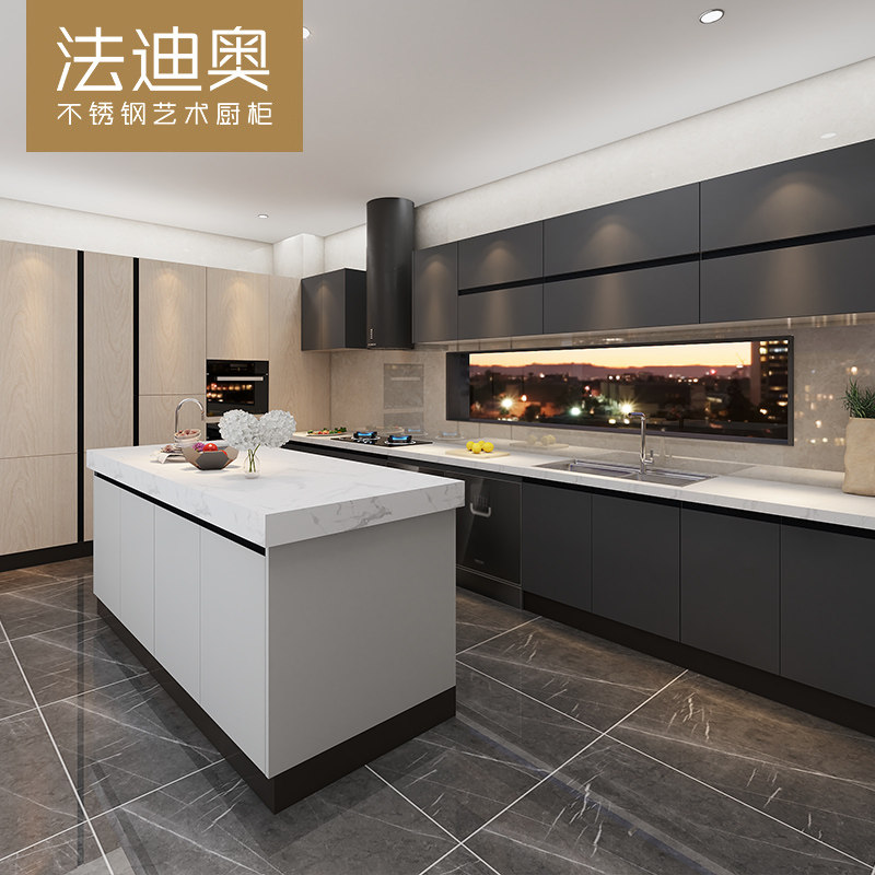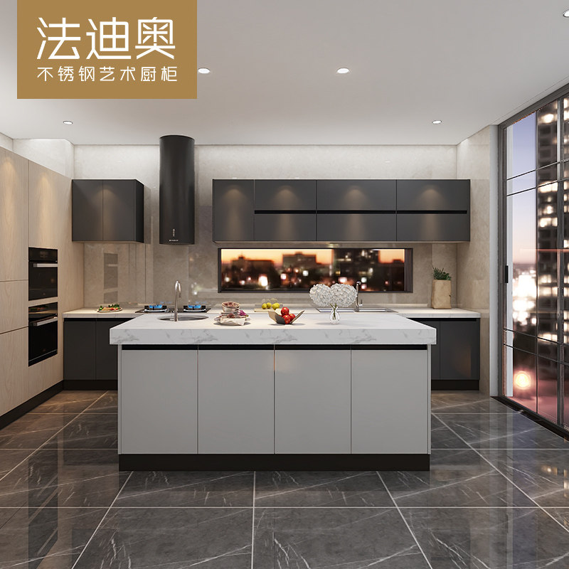 法迪奥不锈钢橱柜定制西厨岛台开放式石英石厨房台面全屋定制厨柜