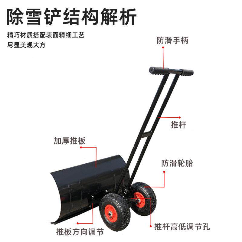 现货直发小型除雪铲人工推雪手推式清雪铲双杆轮式推雪铲除雪工具