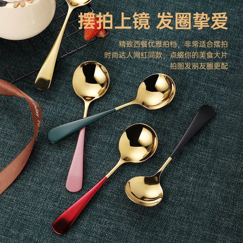 宅小二304不锈钢勺子网红女家用小汤匙韩式调羹勺子创意轻奢可爱