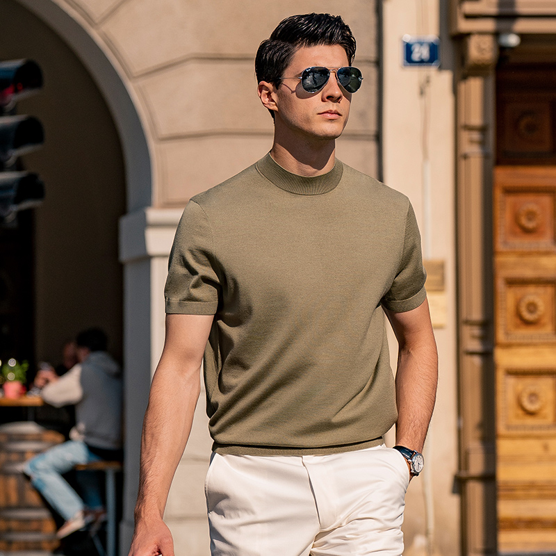 佟大为同款MrBu布先生短袖羊毛衫半高领可机洗打底针织t恤男士