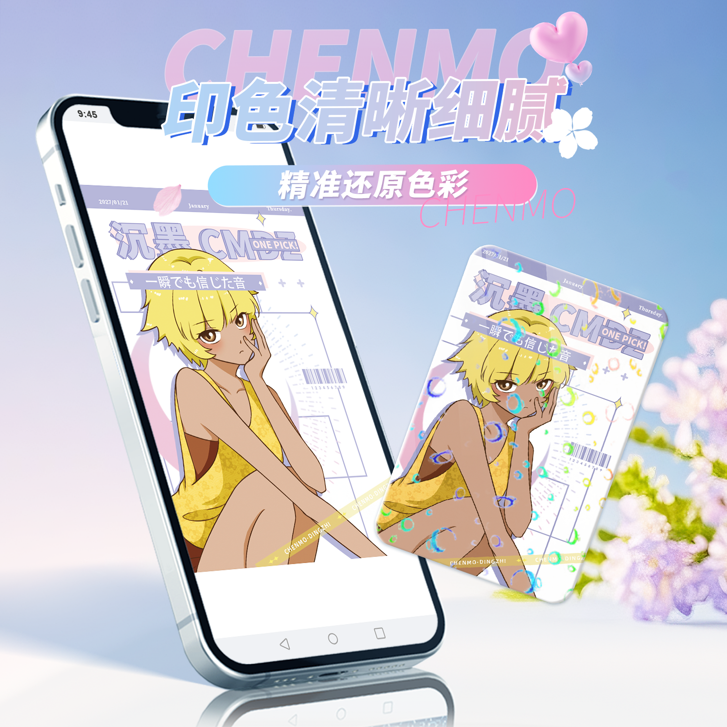 沉墨水滴镭射膜圆角小卡来图定制自印自制加厚硬卡打印diy印刷
