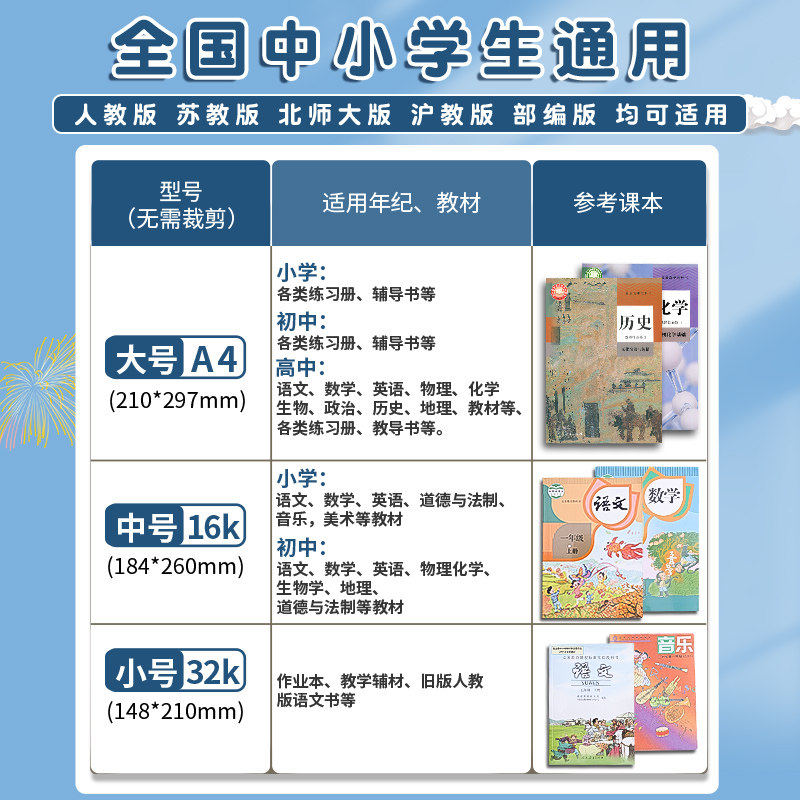 晨光书皮自粘透明磨砂包书皮贴纸小学生专用一年级包书膜二三年初中生a4书套16k书衣课本保护套a5作业本书壳