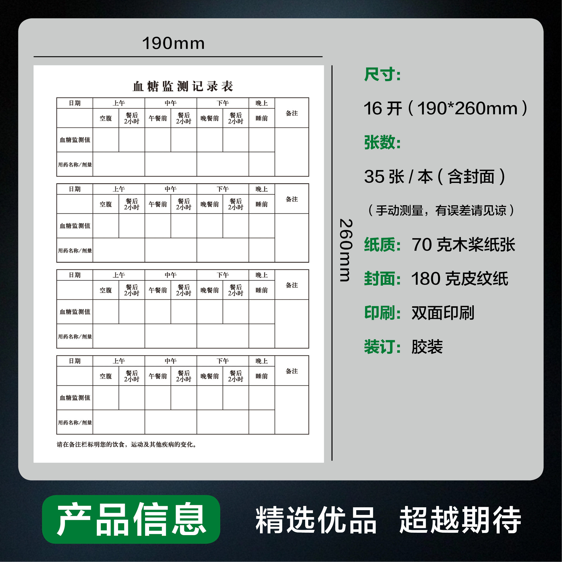 血糖血压监测记录本血糖自我监测记录簿三高人群糖尿病监测记录本
