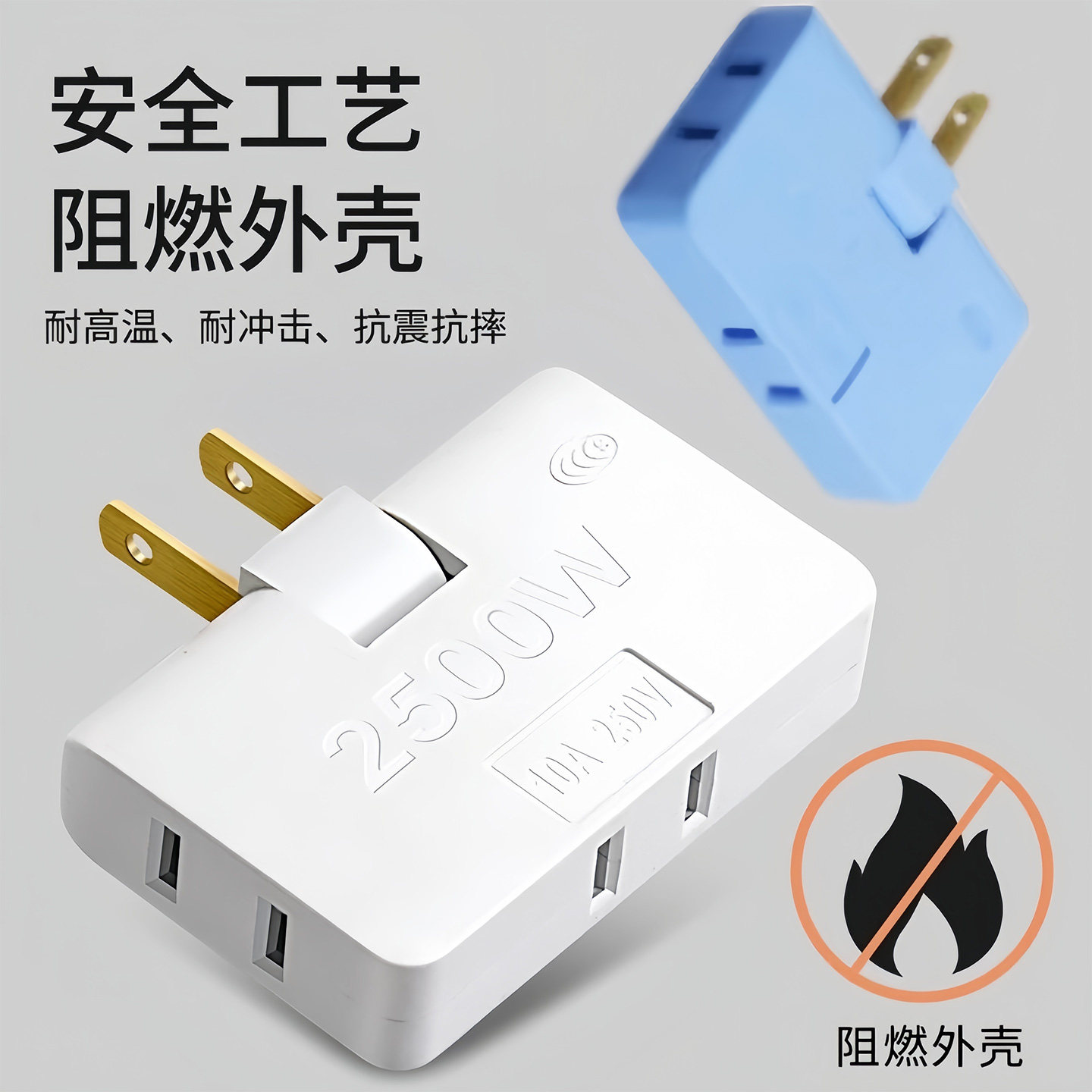 超薄多孔一转三扩展折叠多功能电源插座扩展器转换两孔插头转换器