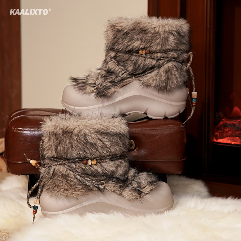 kaalixto新款加绒保暖男女冬款雪地靴棉鞋女潮流户外短靴时尚防滑