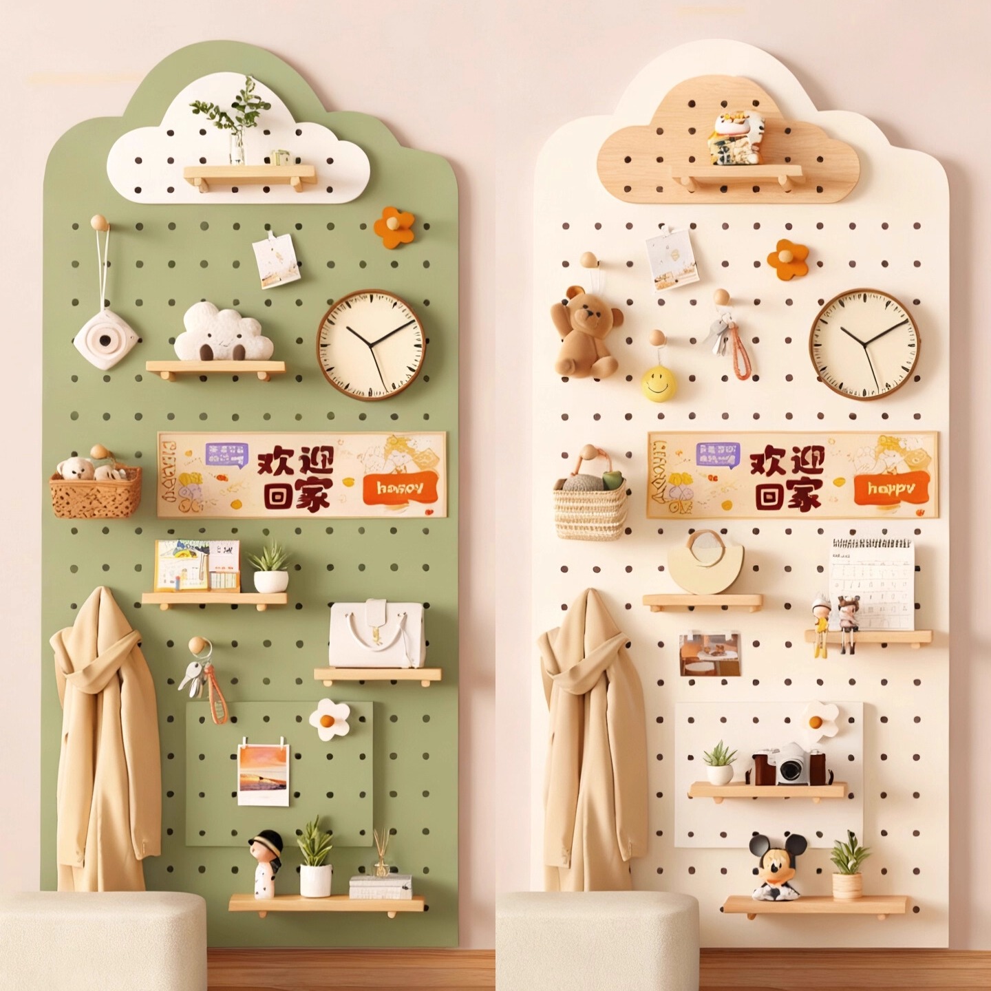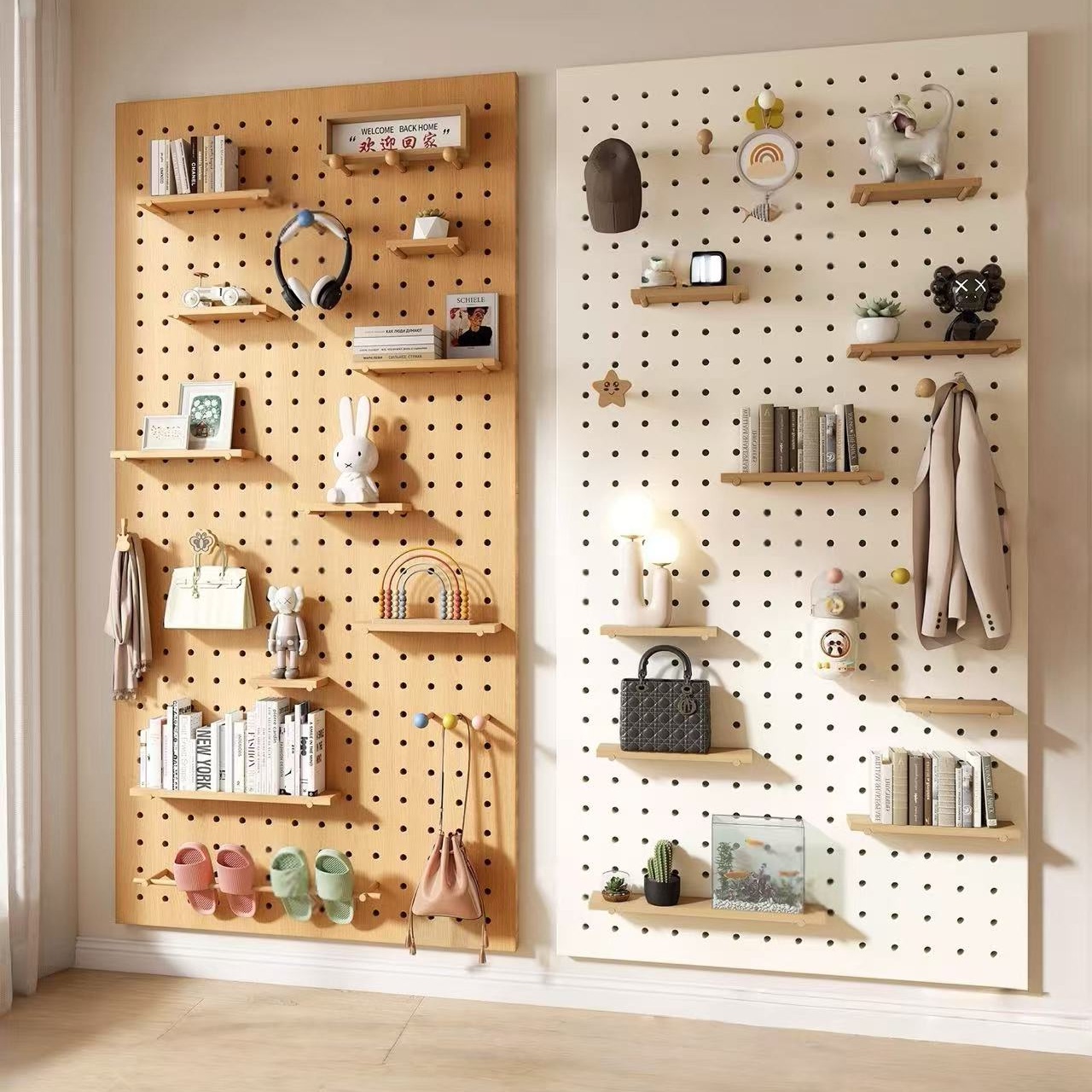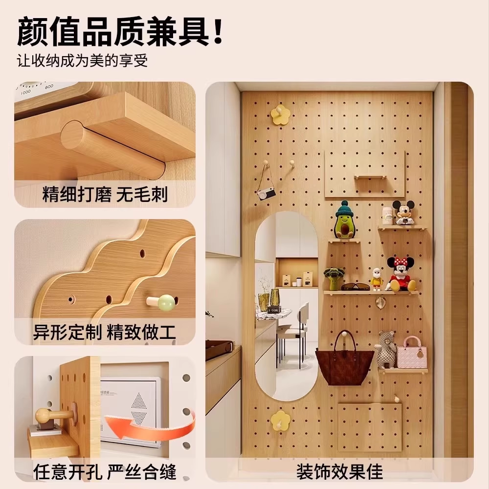 洞洞板定制入户置物架玄关收纳隔板挂衣架墙面整理架壁挂木质挂板