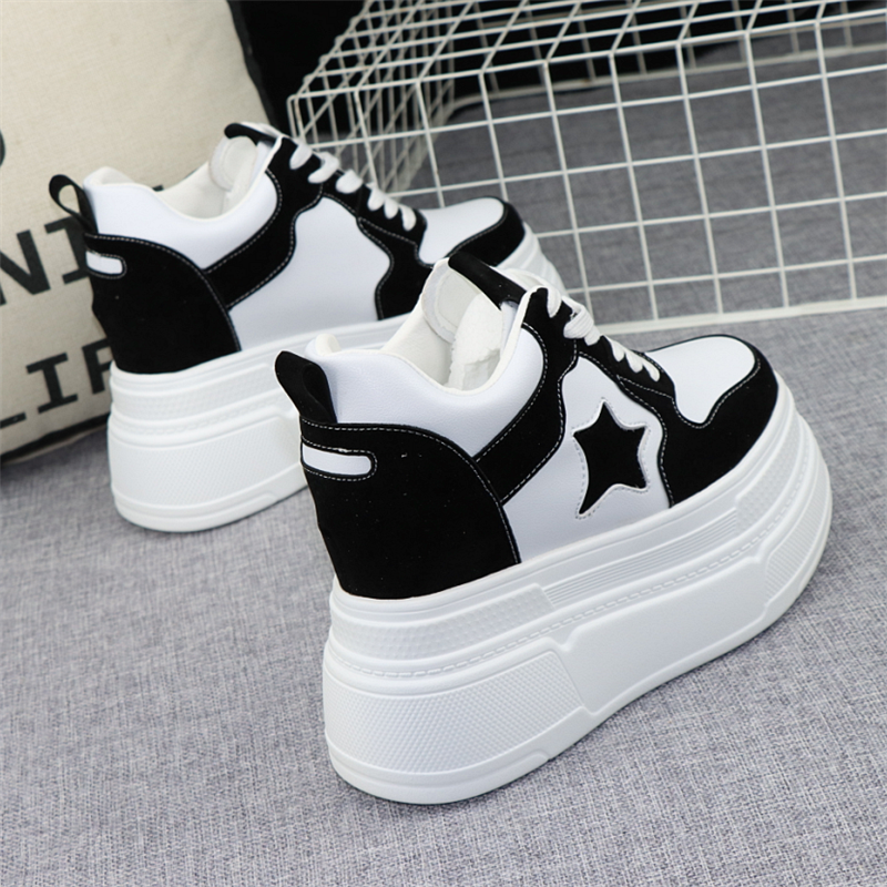 12公分超高跟女鞋2023秋季新款显瘦10cm厚底松糕鞋低帮系带小白鞋