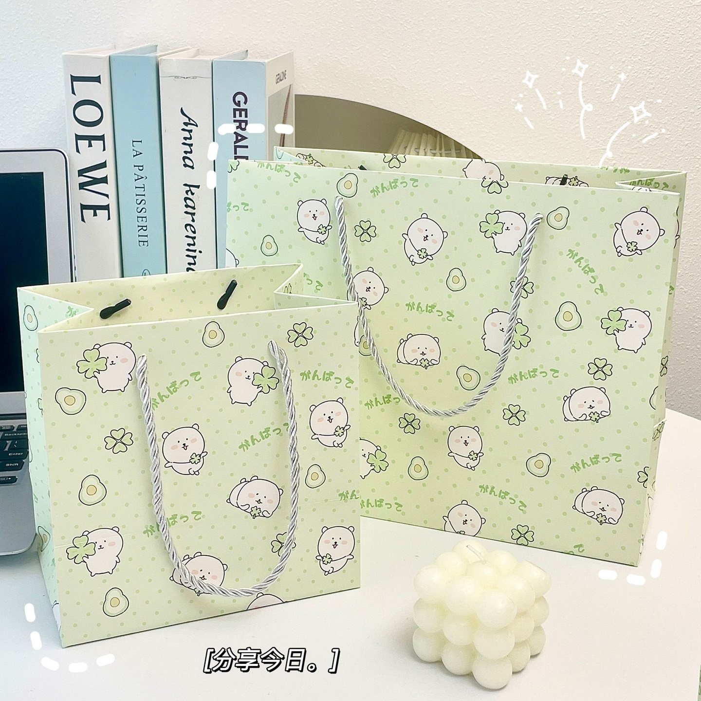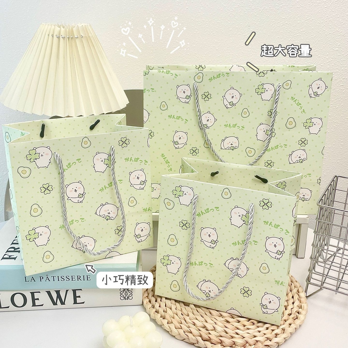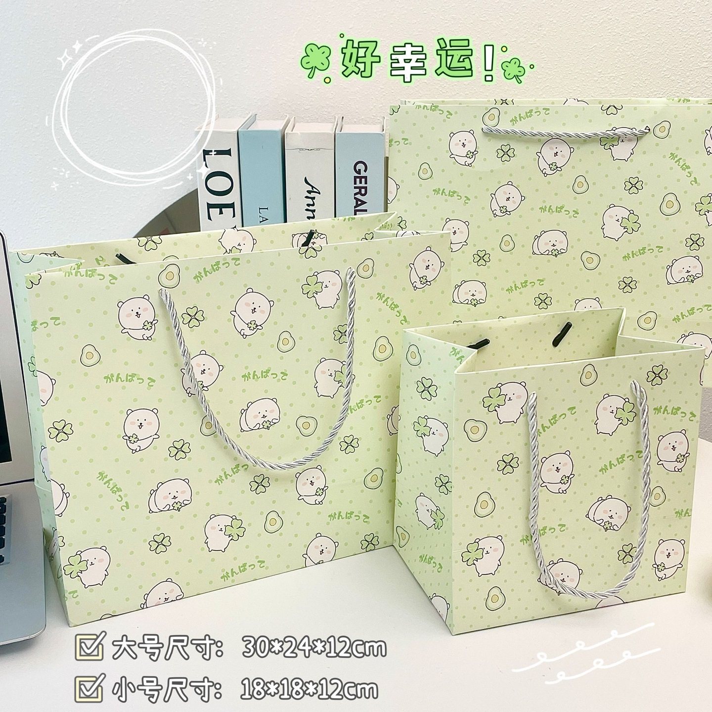 自嘲熊四叶草生日礼物包装礼品袋手提ins白卡纸袋耐用收纳购物袋