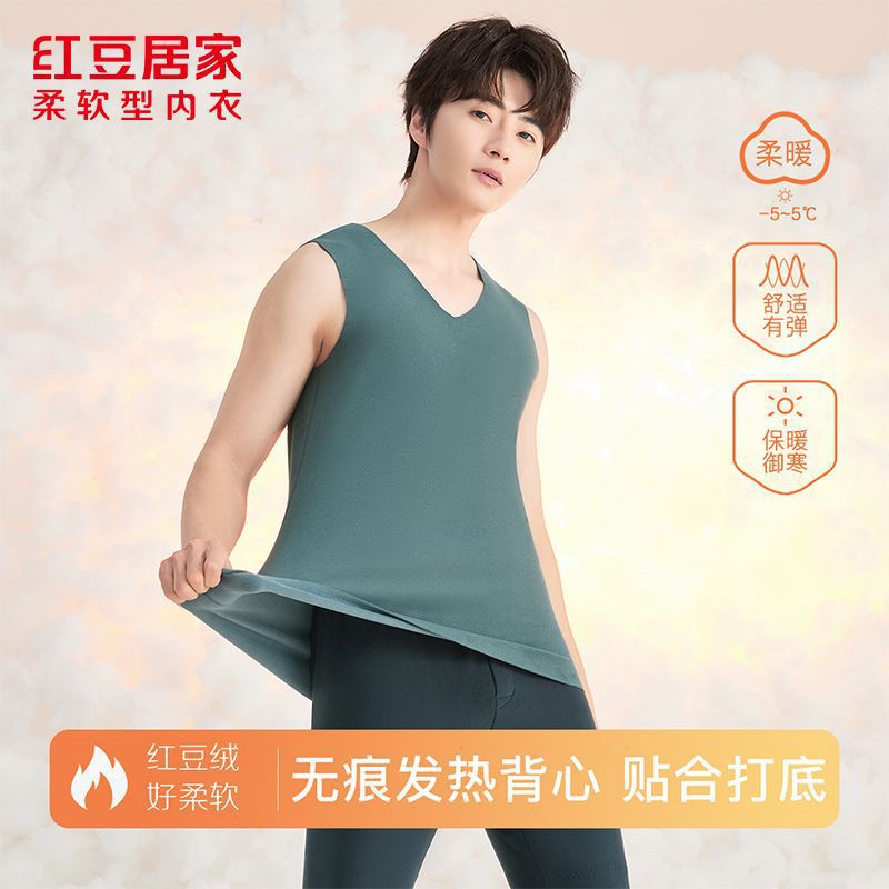 红豆无痕发热背心男女士秋冬季双面磨毛高弹打底衫情侣款保暖内衣