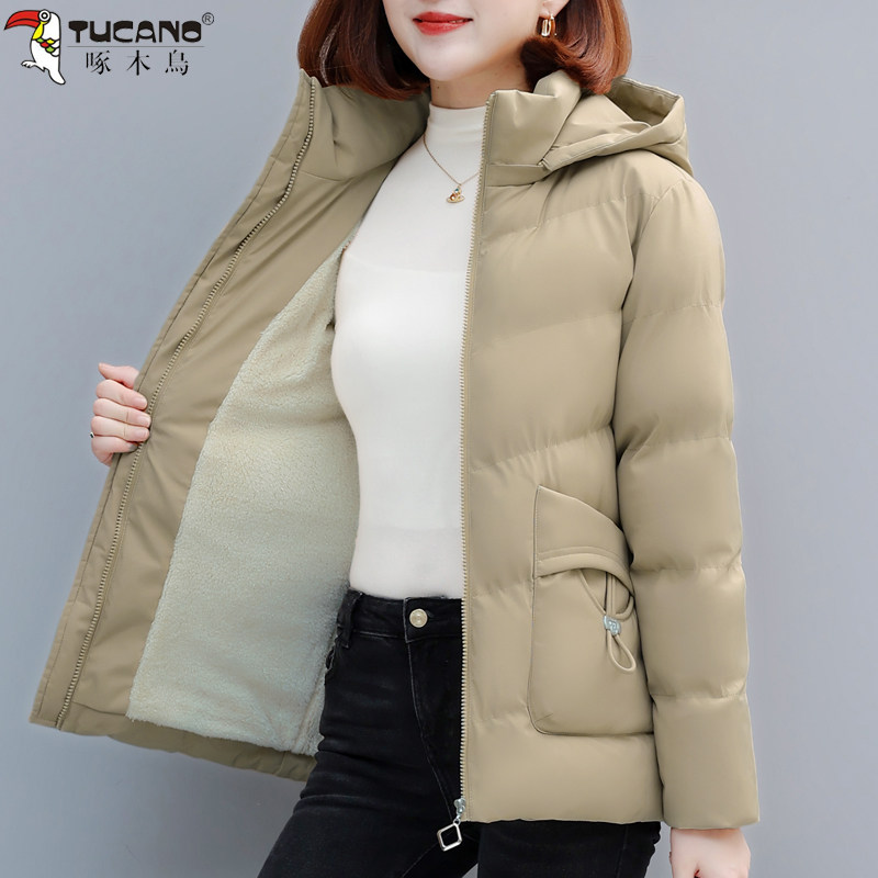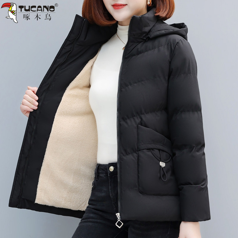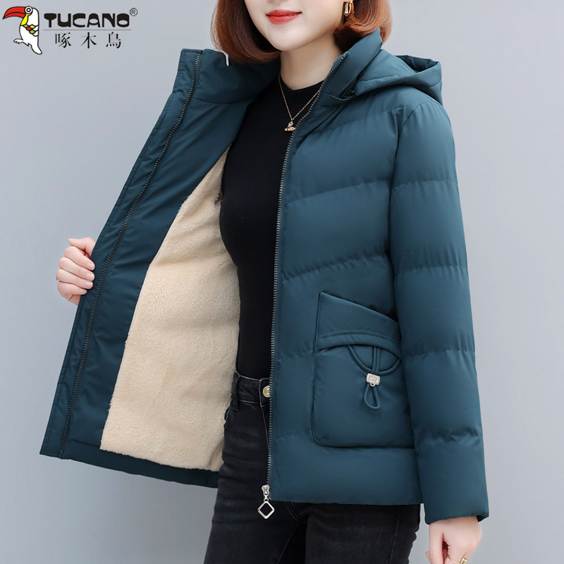 啄木鸟加绒棉衣棉服女士冬季2025年新款短款中年妈妈加厚防寒外套