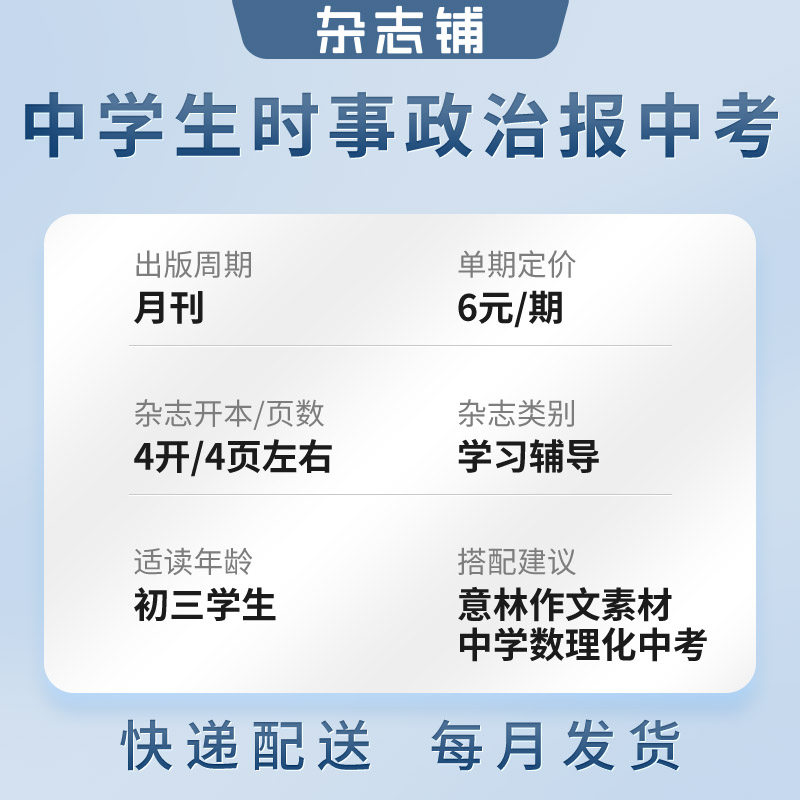 中学生时事政治报中考版 2023年1月起订 1年48期 适合于12-15岁中学生 报纸报刊 教辅考试 时事新闻 学习辅导期刊杂志订阅杂志铺