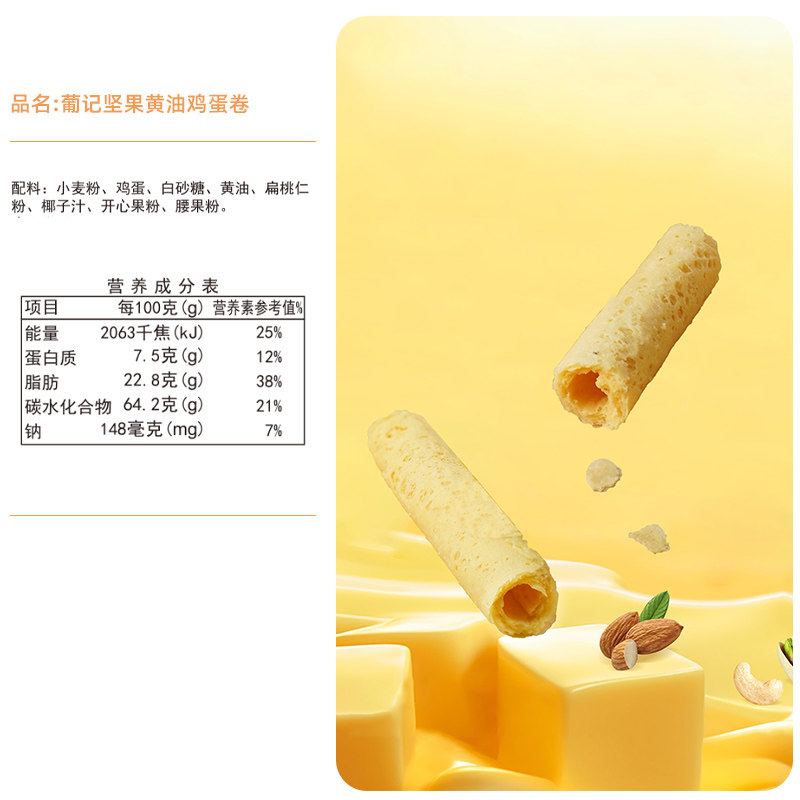 澳门葡记坚果黄油鸡蛋卷508g 手工老式蛋卷特产零食手信年货礼包