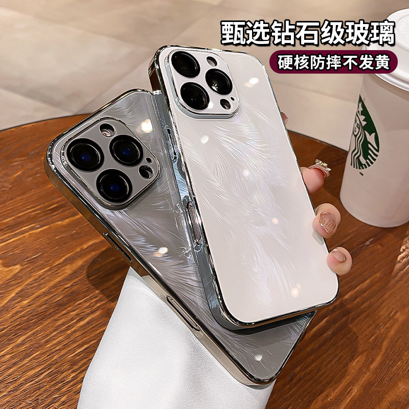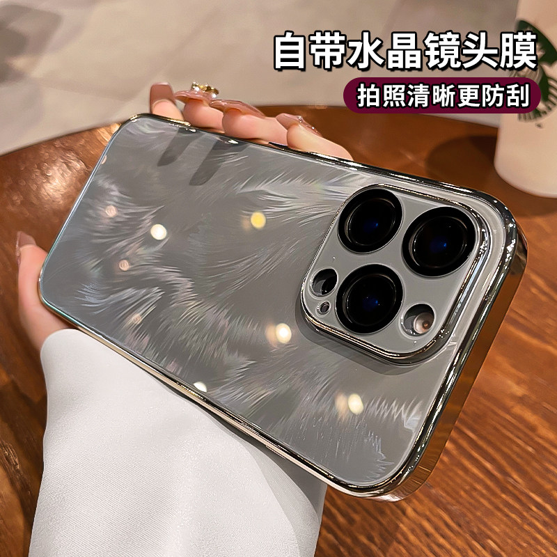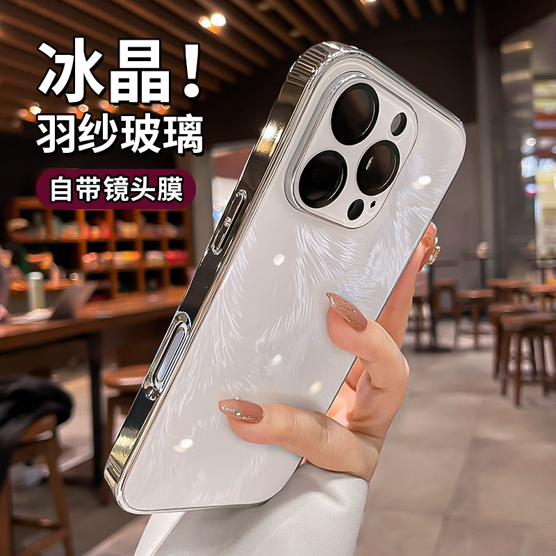 夏天冰晶适用iphone17手机壳苹果15promax新款羽纱玻璃14pro独特好看16pm镜头全包轻奢高级感小众por防摔套女