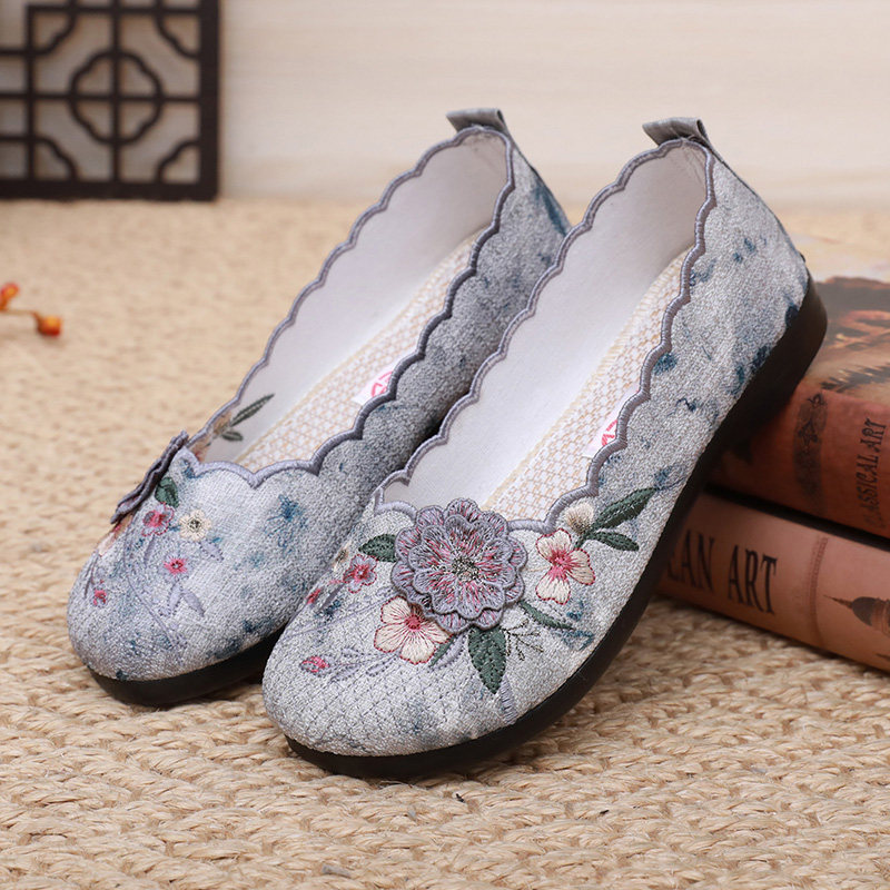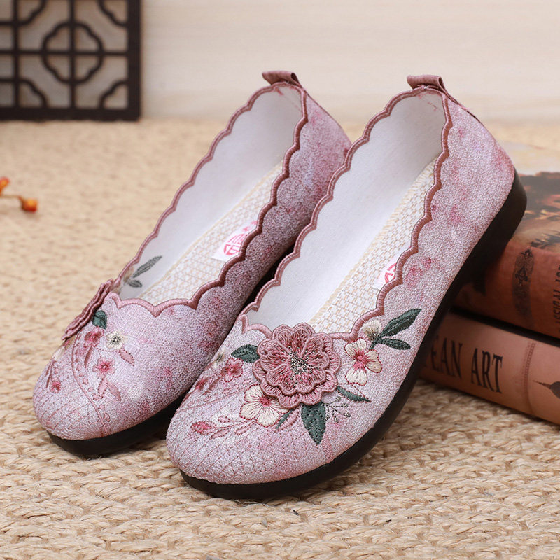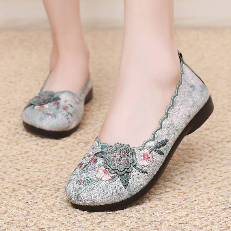 夏款新款老北京布鞋女民族风绣花鞋时尚百搭浅口鞋轻便防滑妈妈鞋