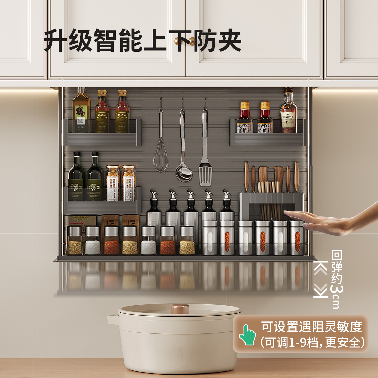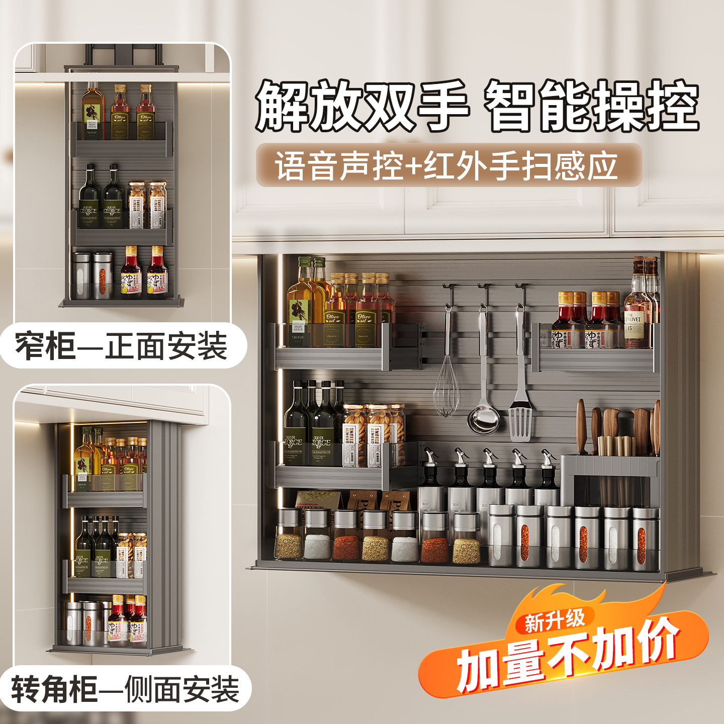 厨房吊柜升降拉篮垂直下拉式置物架橱柜智能语音电动升降调味拉篮