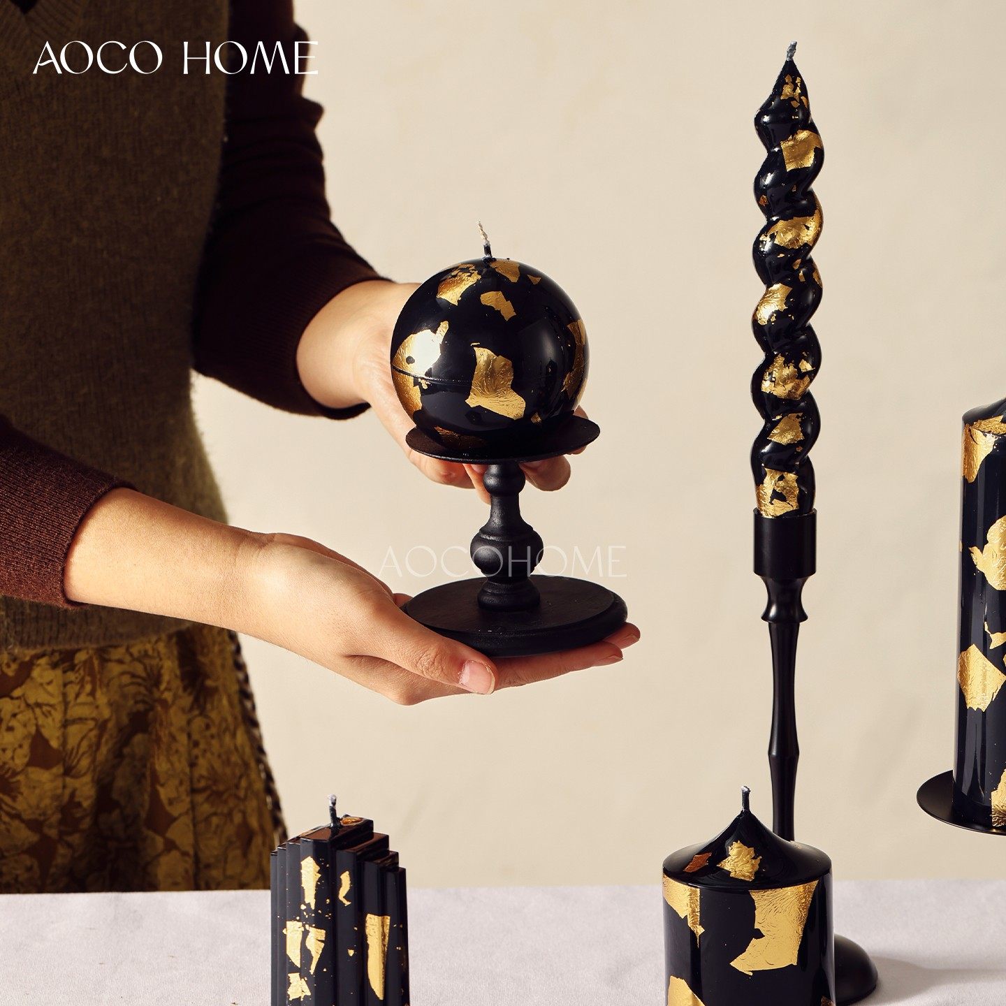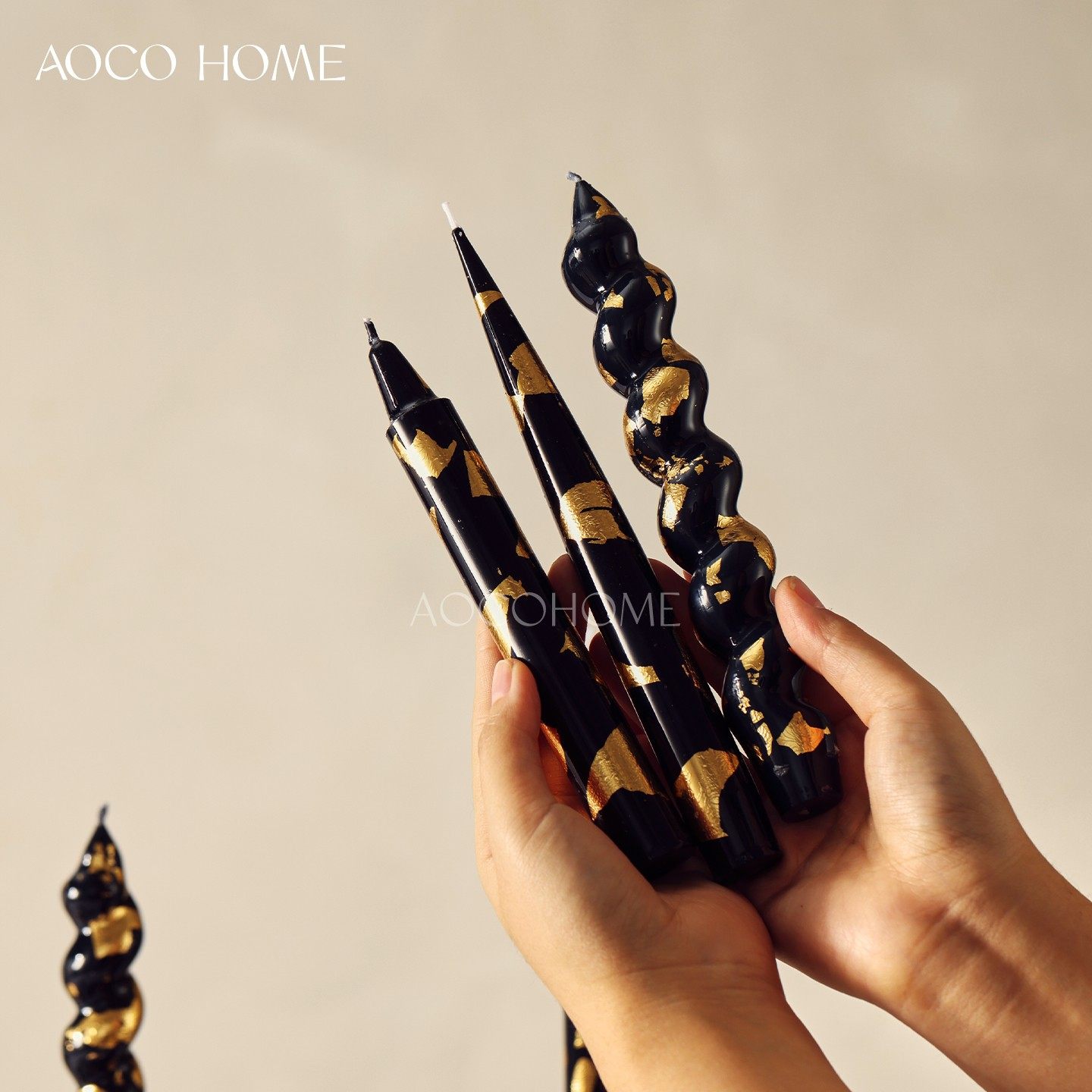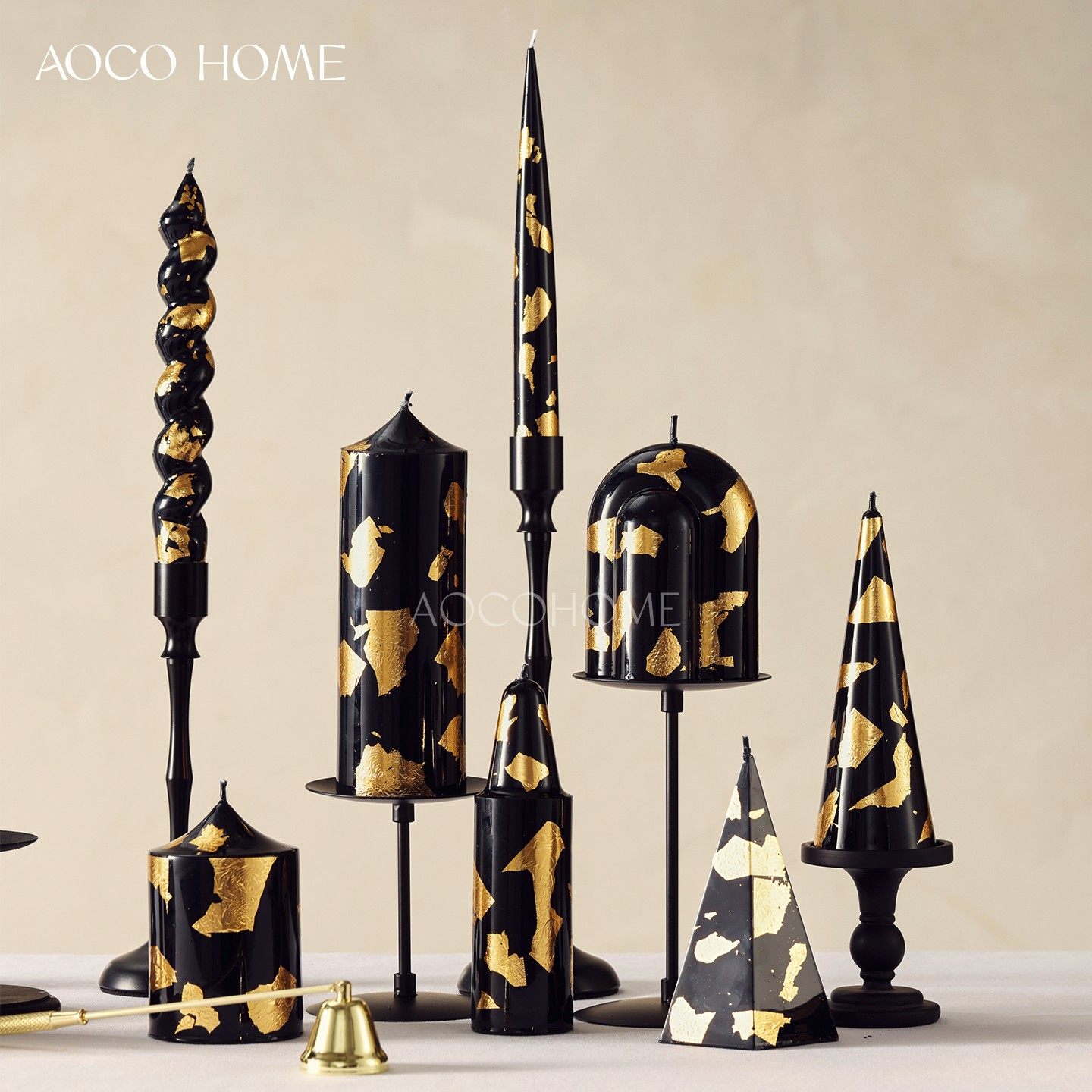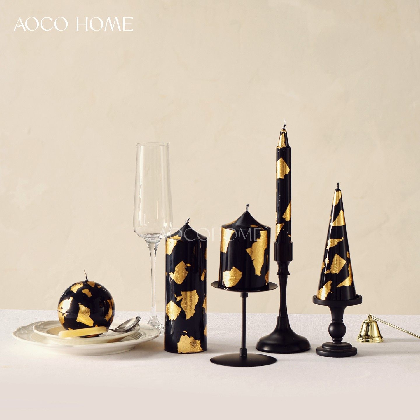 【鎏金】黑色金箔蜡烛无味艺术小众高级感家居装饰品金属烛台摆件