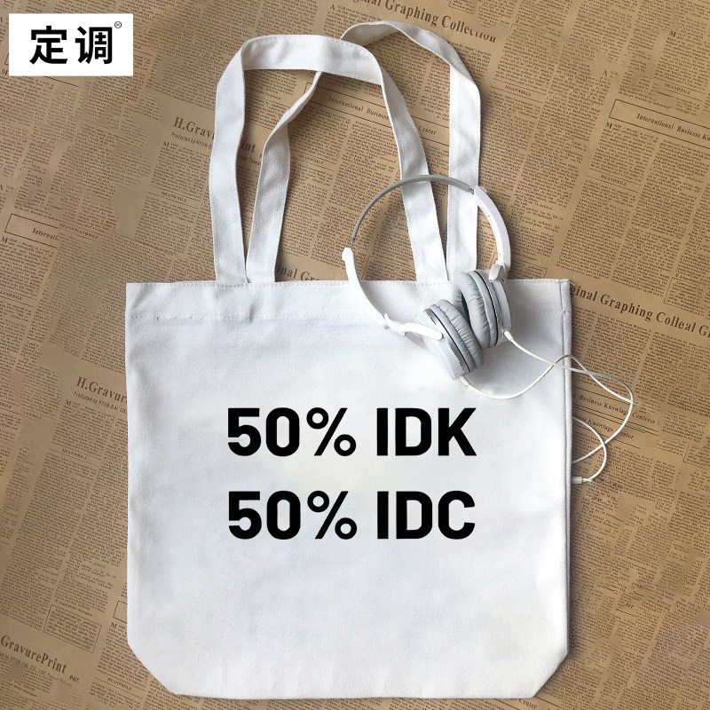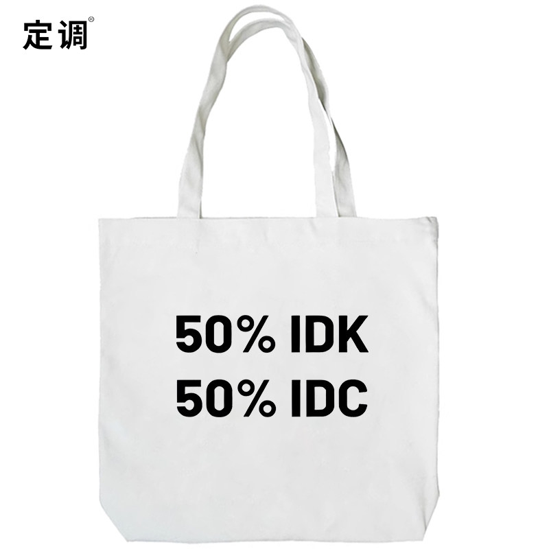 50%IDK 50%IDC趣味英文季纯棉小众设计搞笑帆布包手提袋