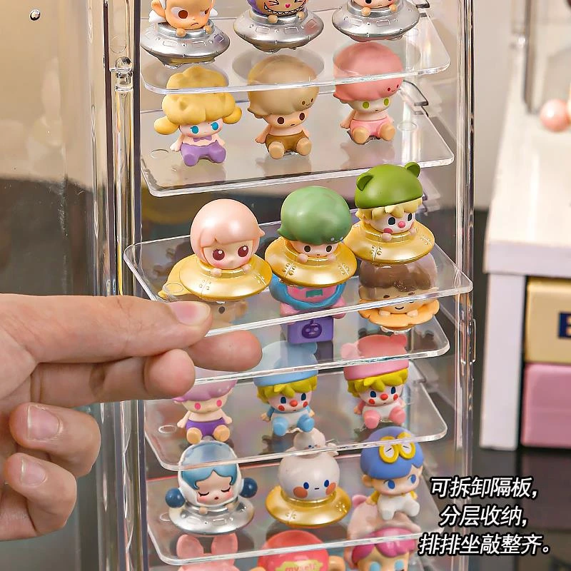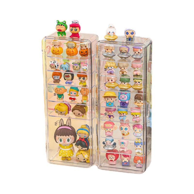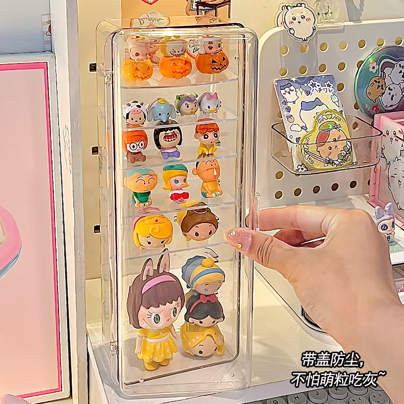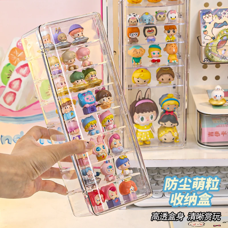 透明萌粒收纳盒桌面多层防尘手办盲盒展示架可爱模型小摆件整理盒