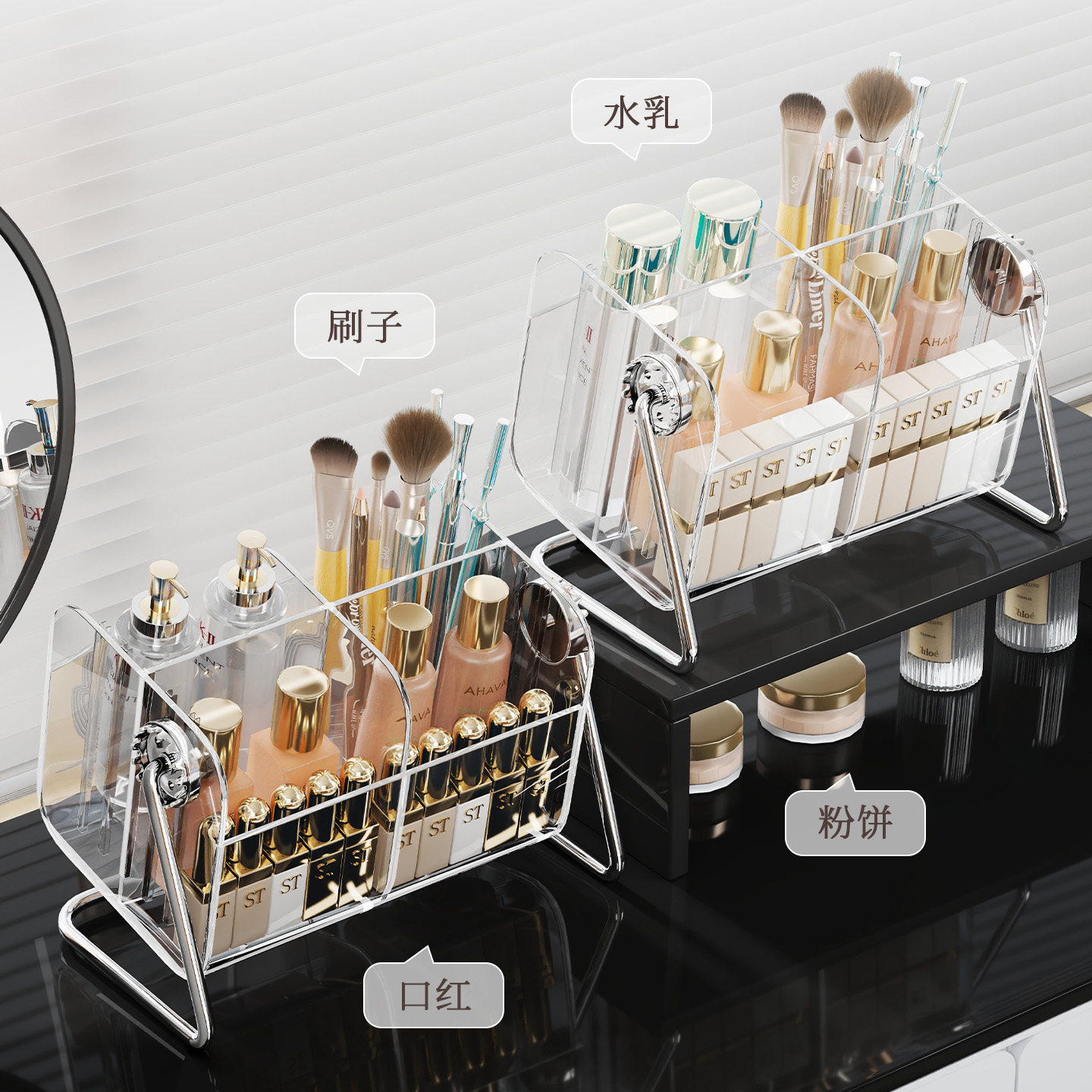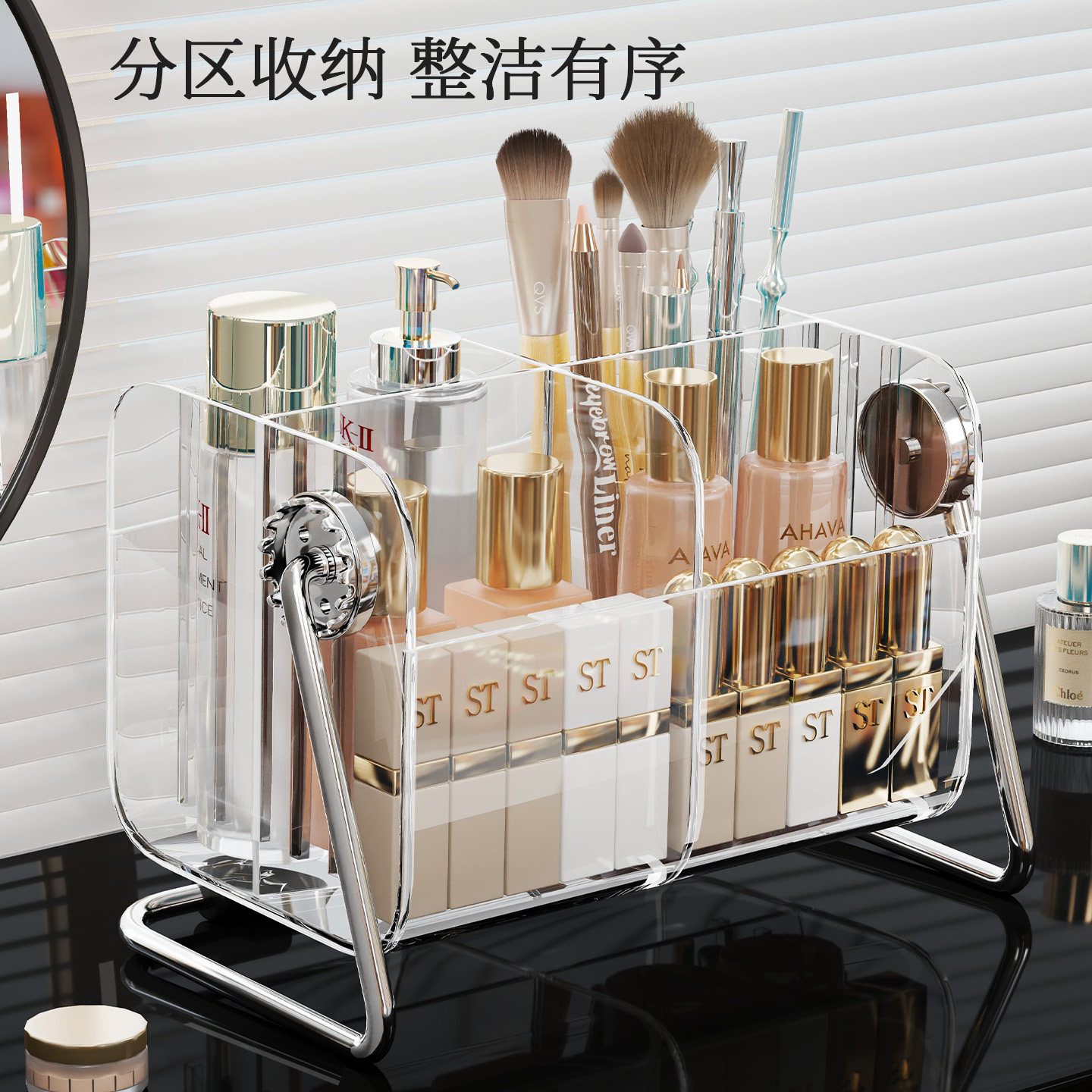 化妆品收纳架分格防尘粉扑桌面大容量整理盒美妆蛋多层透明置物架