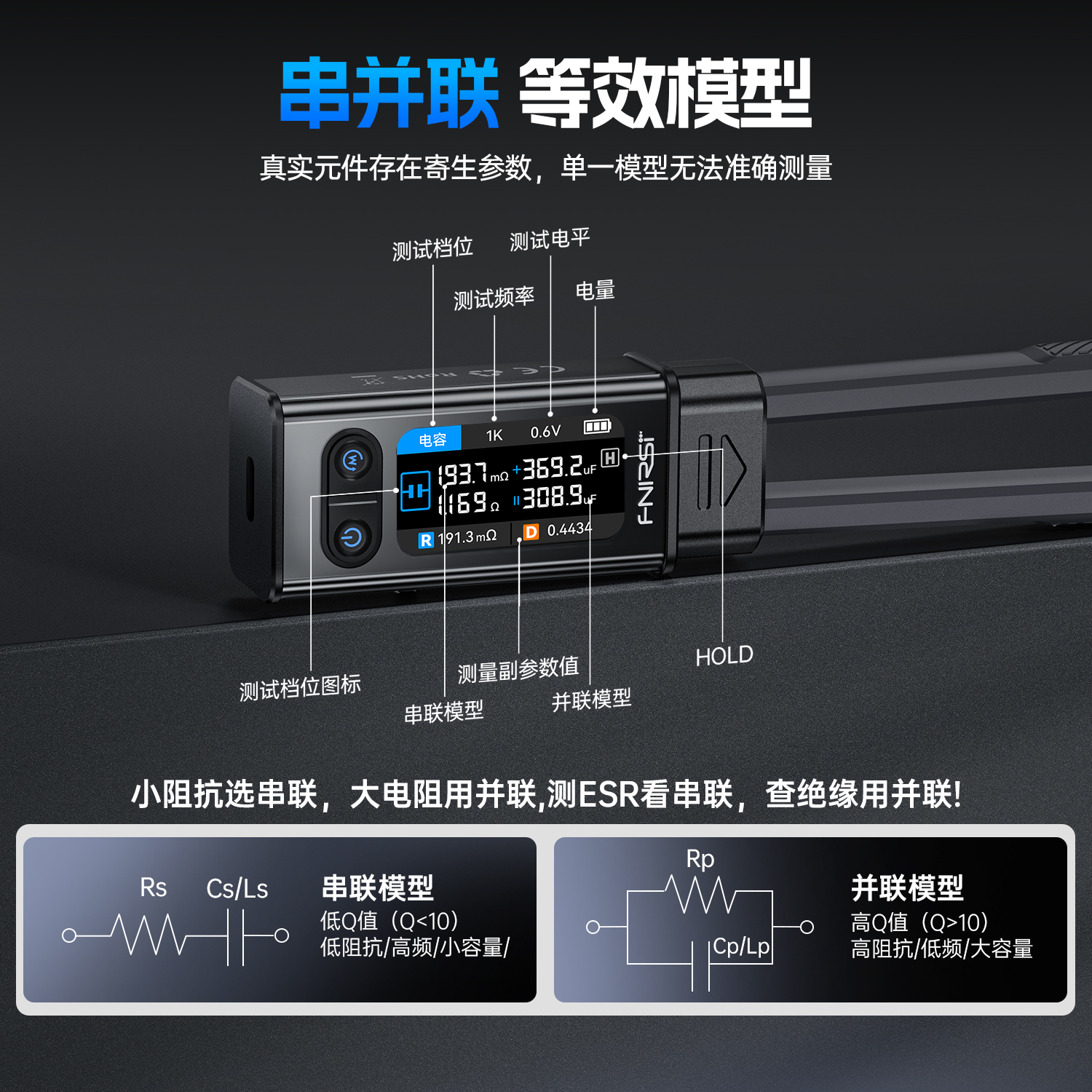FNIRSI菲尼瑞斯数字电桥镊子LCR-ST2高精度二代手持元器件测试仪