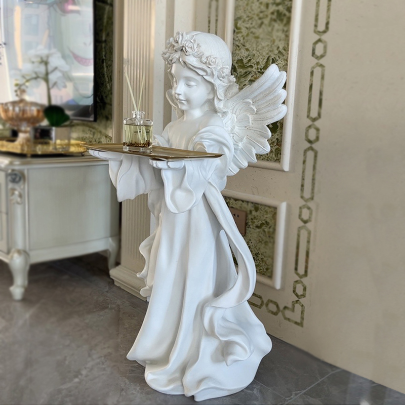 欧式复古天使落地摆件托盘客厅玄关钥匙创意桌面装饰品石膏像雕塑
