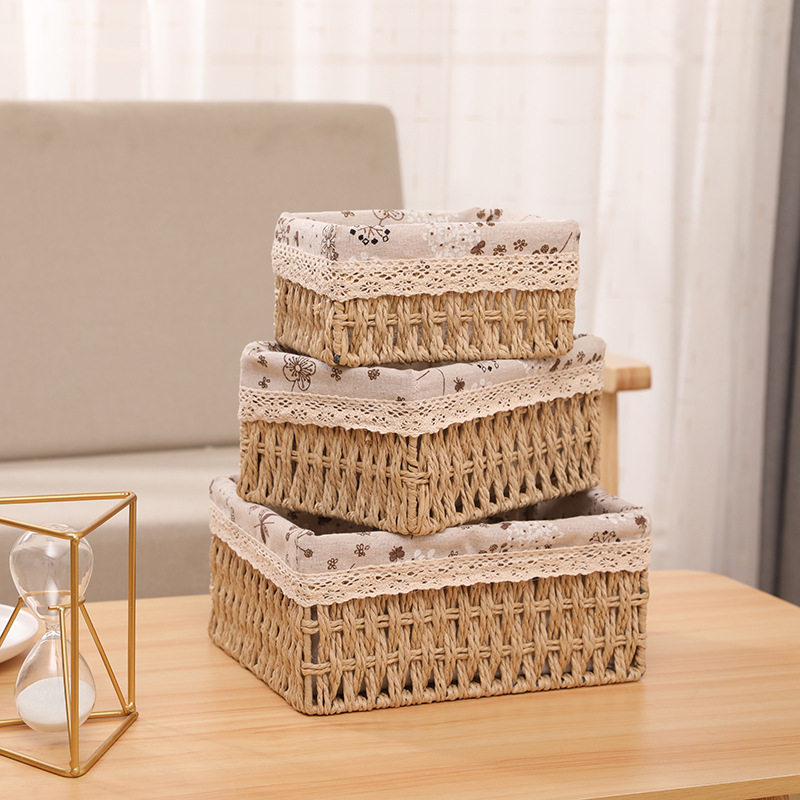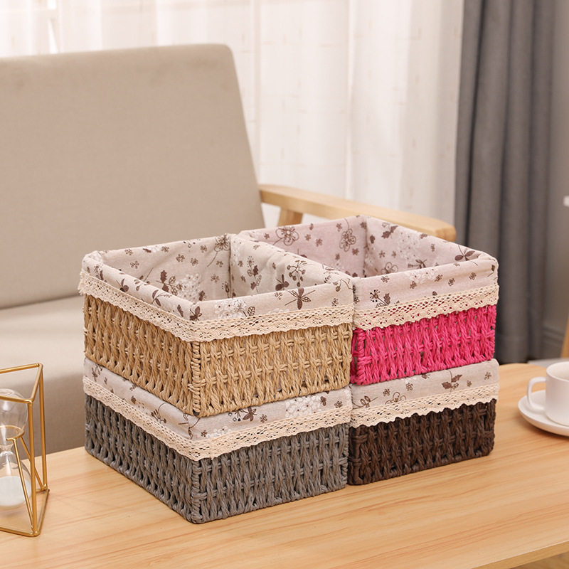 化妆品收纳盒茶几遥控器桌面布艺杂物简约零食篮客厅钥匙藤收纳筐