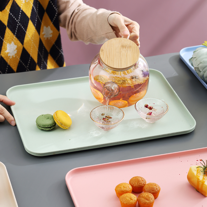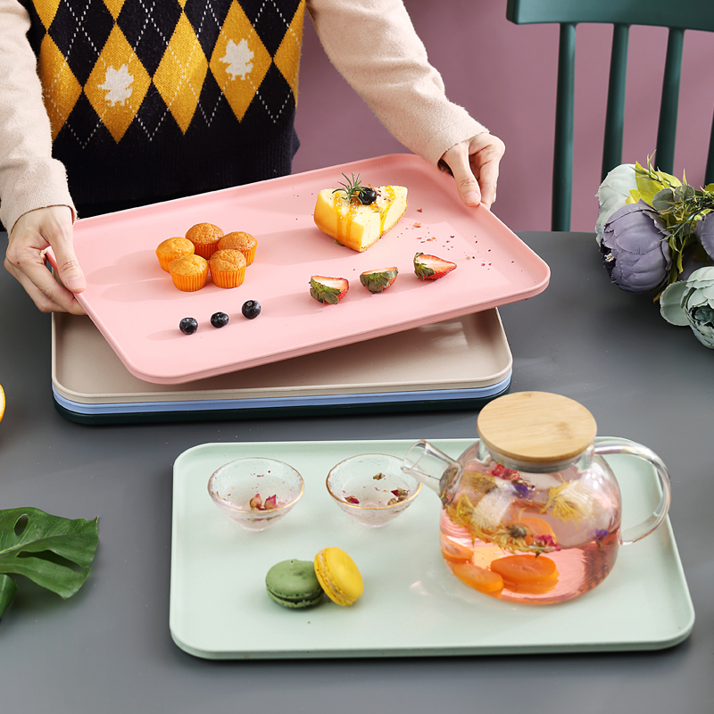 加厚托盘家用商用酒店幼儿园长方形塑料茶盘放水杯的盘子小麦秸秆