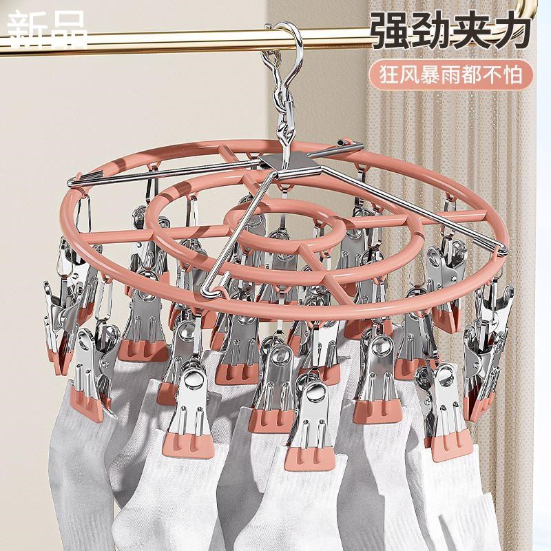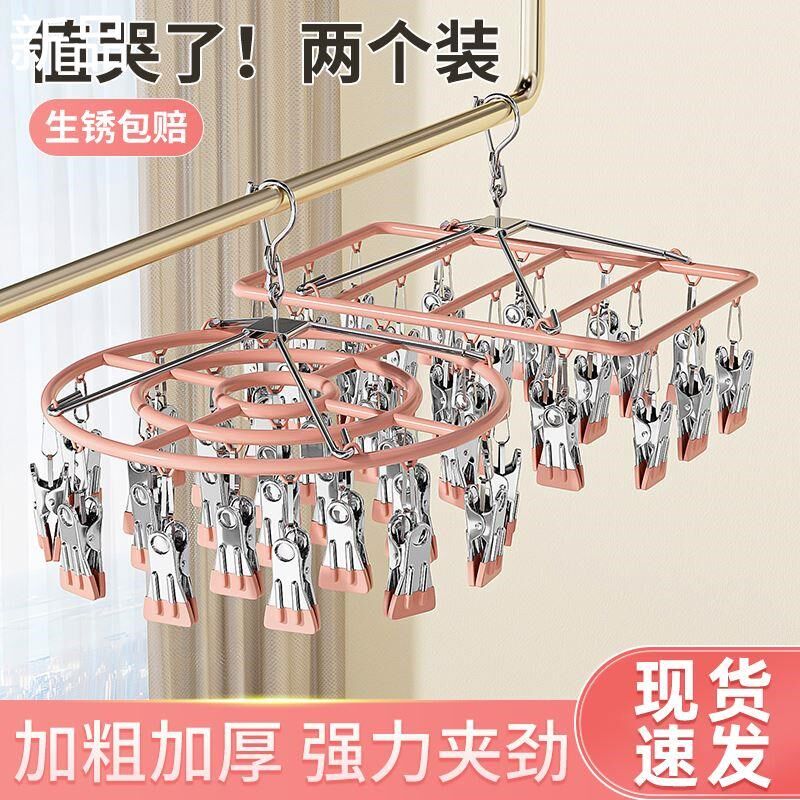 袜子晾衣架家用挂衣不锈钢多夹婴儿凉子防风内衣多功W能晒袜子神