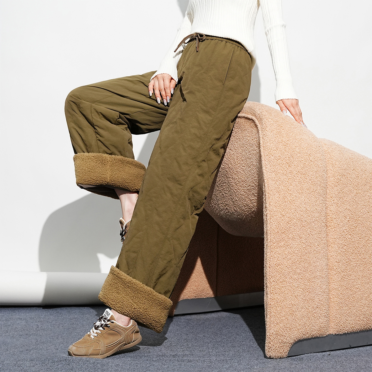 雪中飞2025冬新款葫芦纹羽绒裤女士韩版宽松直筒阔腿保暖羊羔绒S