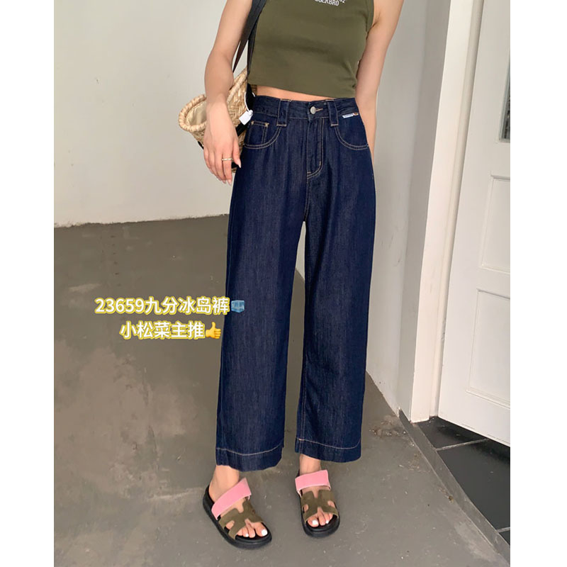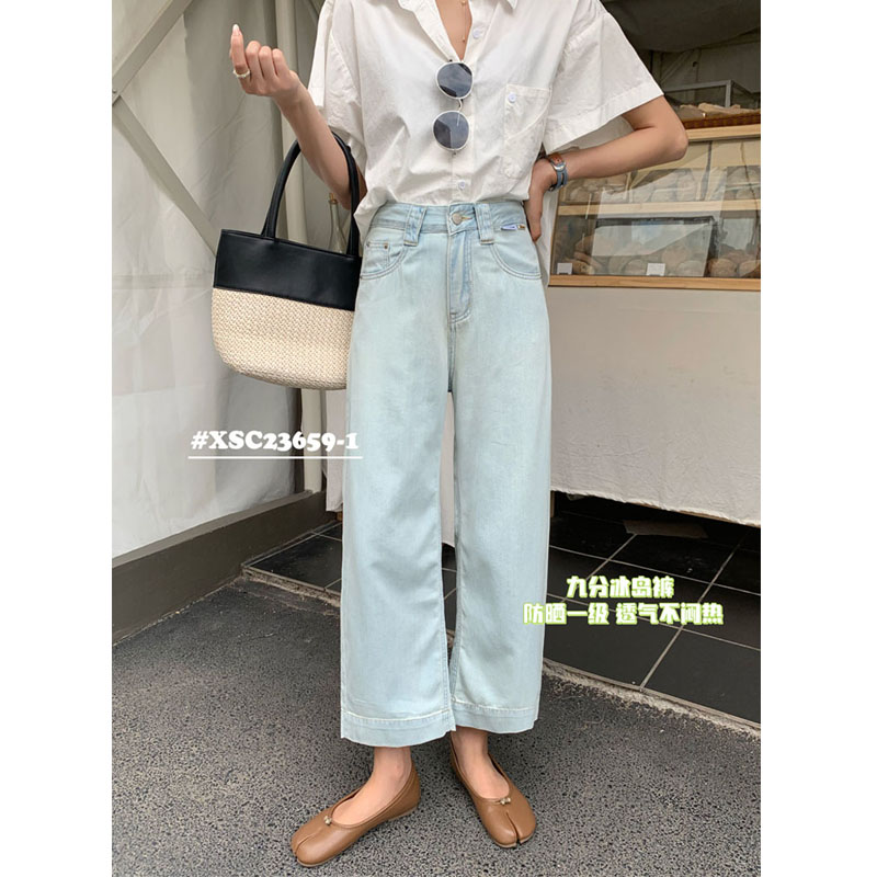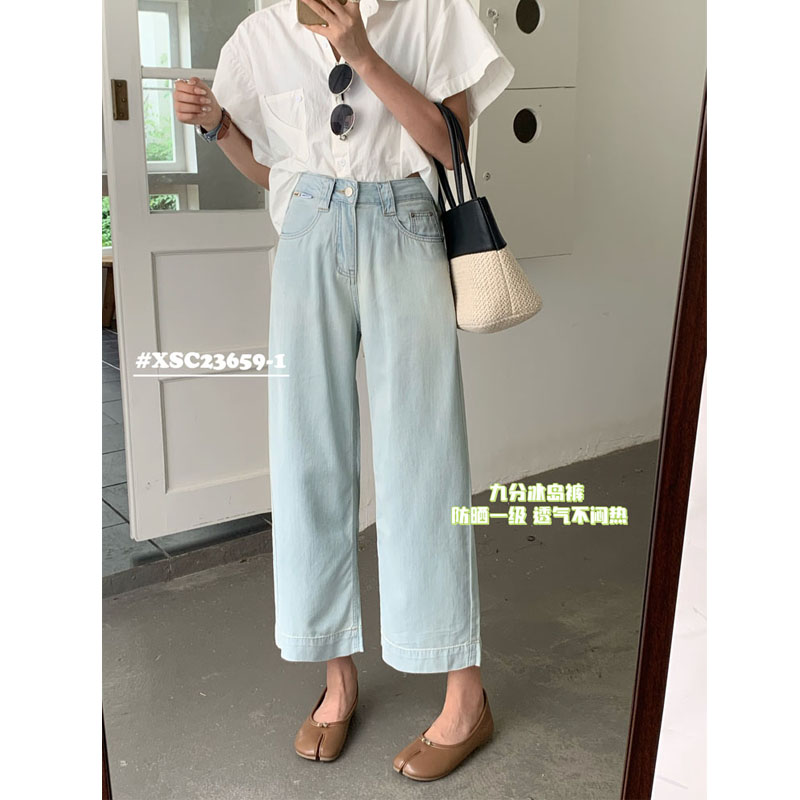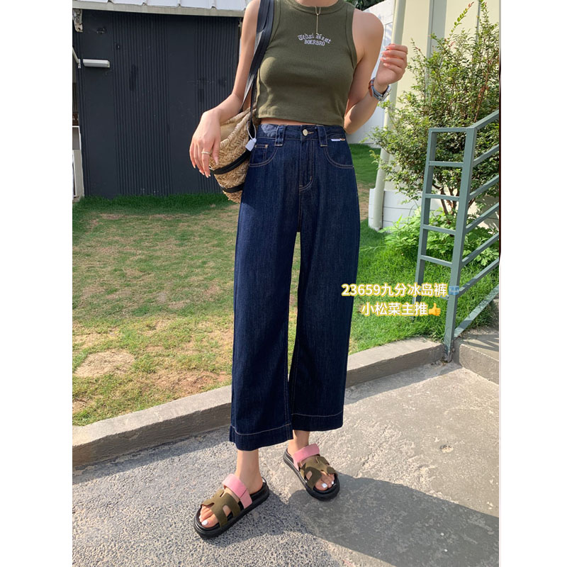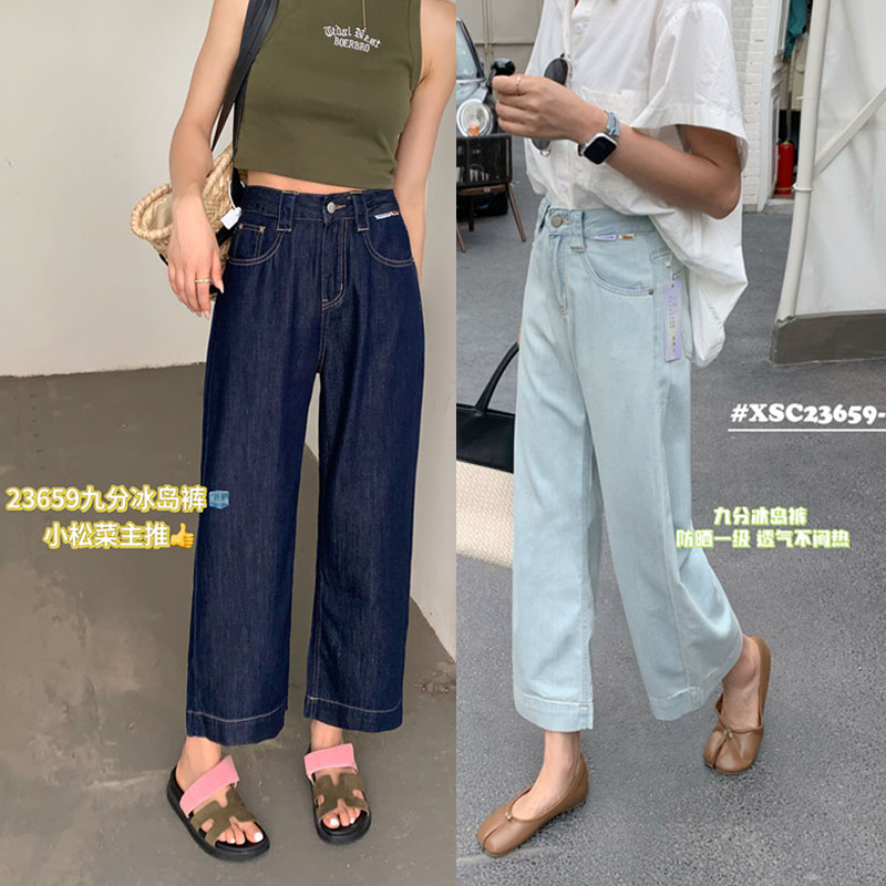 小松菜夏季九分阔腿裤高腰大码女士休闲裤防晒透气冰岛裤薄23659