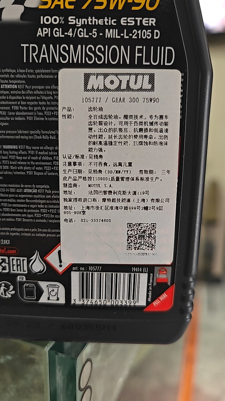 MOTE GEAR 300 75W90变速箱油 齿轮油 差速油
