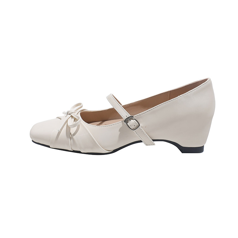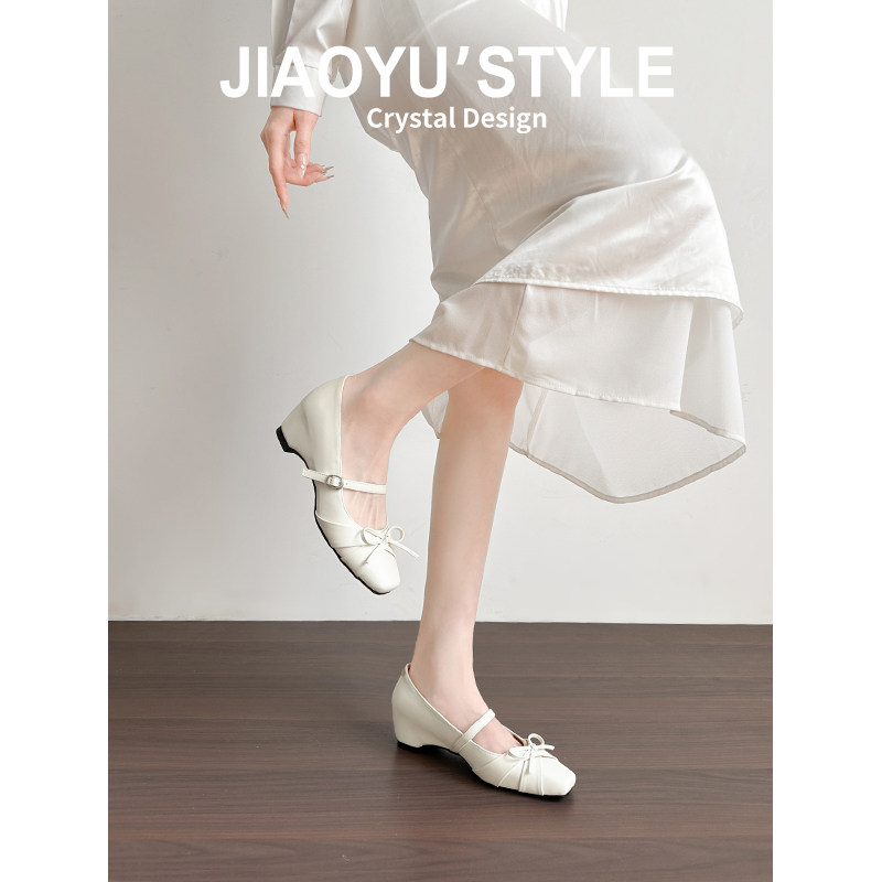 真皮~骄屿法式玛丽珍鞋2026春新款温柔内增高方头蝴蝶结气质单鞋