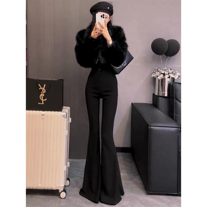 喇叭裤女秋冬加绒加厚黑色裤子高腰显瘦拖地裤垂感休闲长裤西装裤