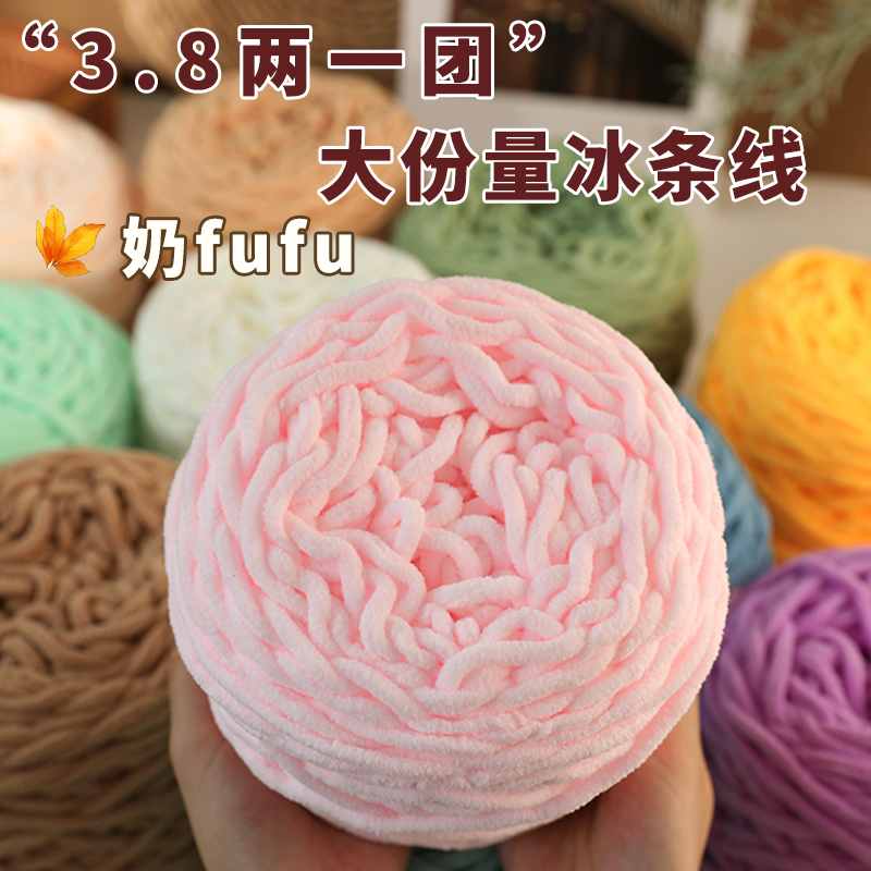 3.8两大团冰条毛线粗毛线编织diy礼物手工编织材料软糯围巾冰条线