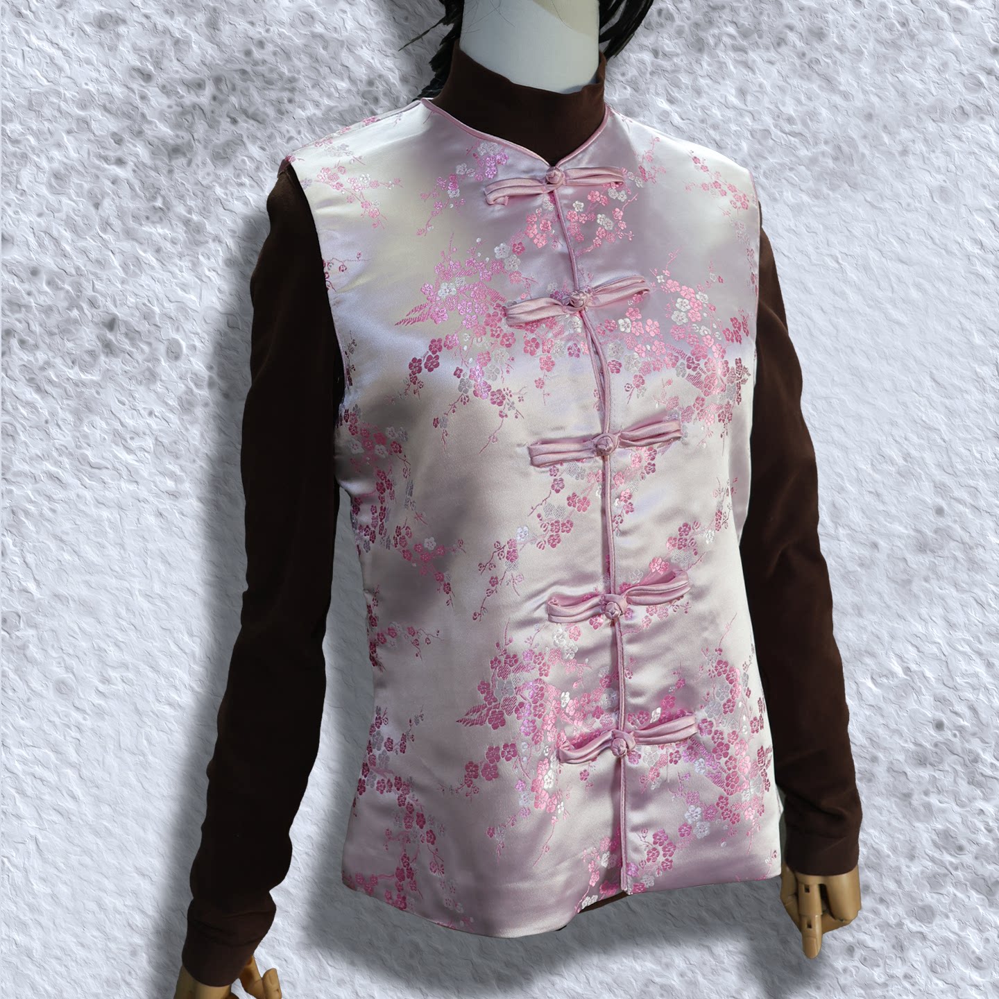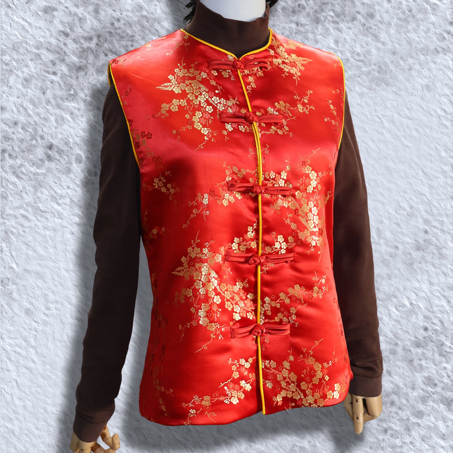 吟龙鸣凤古风锦缎马甲 修身版型 春秋常规中式 花卉纹盘扣