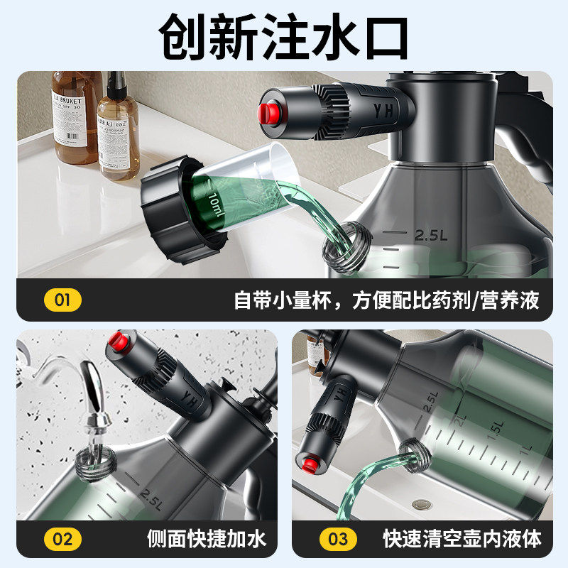 2026新款洗车泡沫喷壶3L大容量便携式高压喷水壶清洁专用pa壶