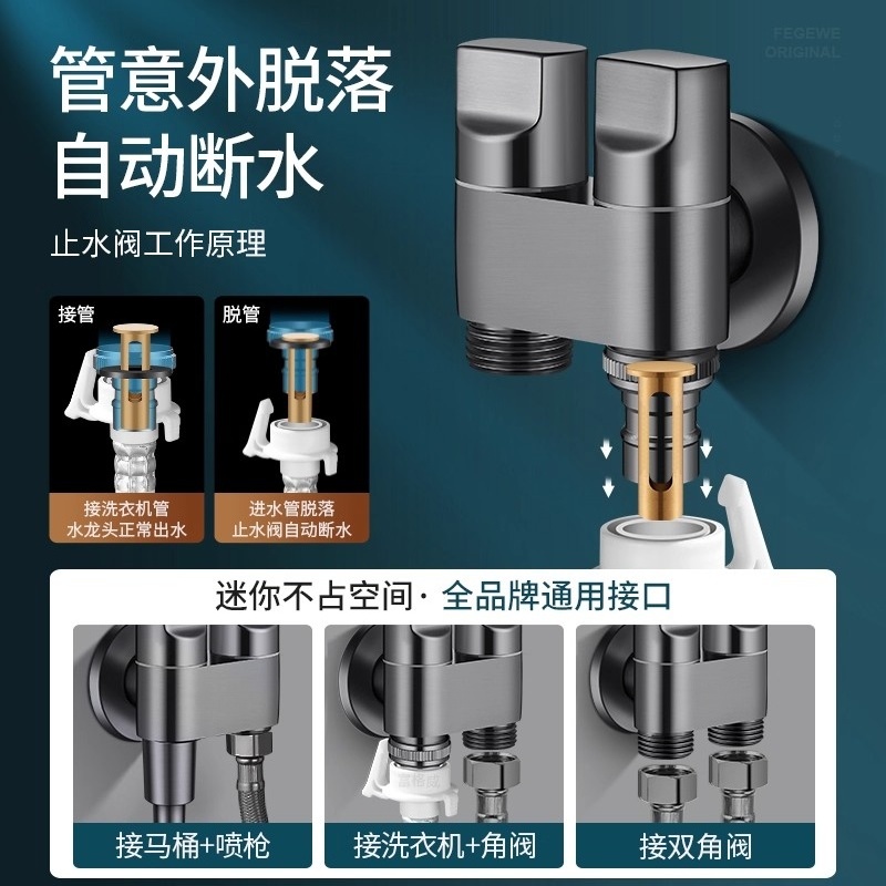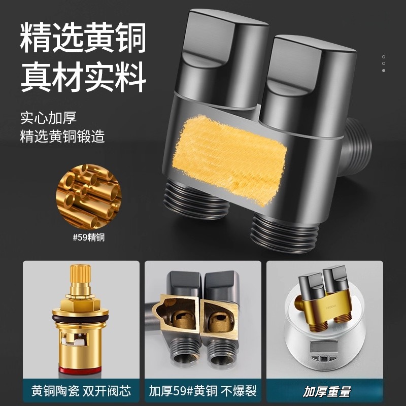 洗衣机水龙头一进二出角阀专用4分三通分水阀双出水一分二接头