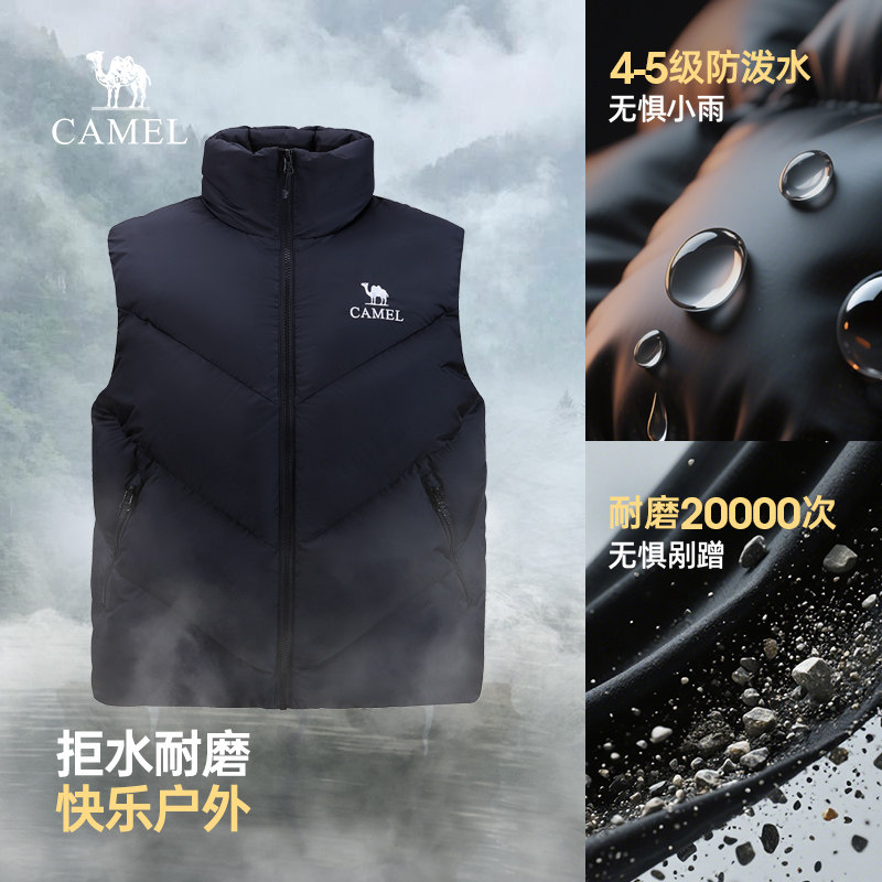 骆驼男装羽绒马甲冬季2025新款外穿防泼水立领加厚坎肩马夹背心