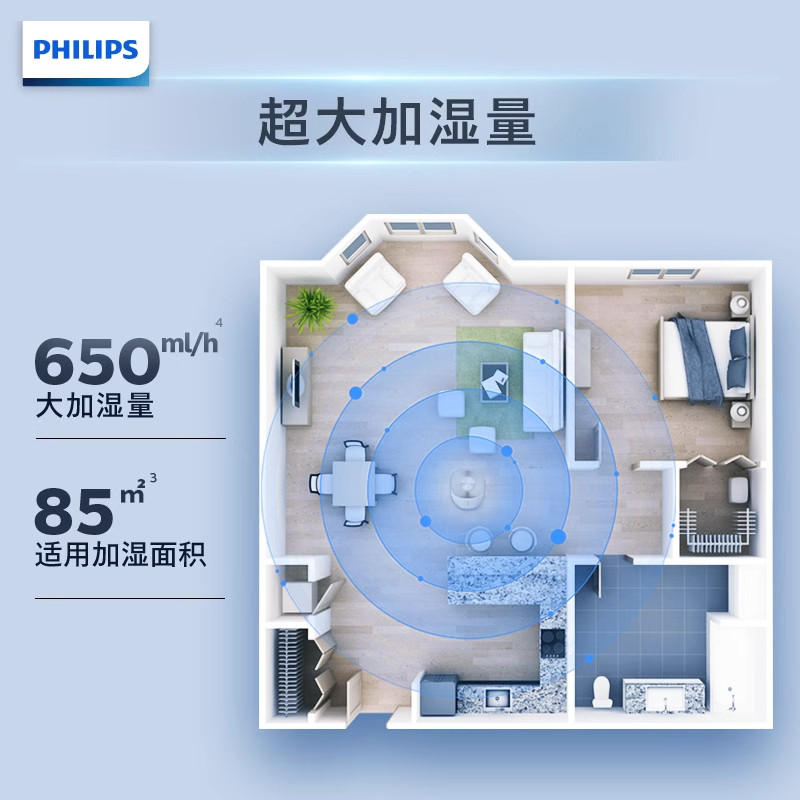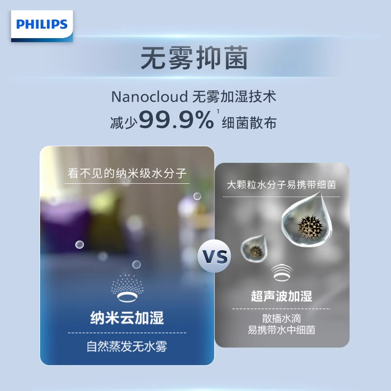 飞利浦无雾加湿器家用轻音卧室空调孕妇婴儿除菌净化大容量HU5969