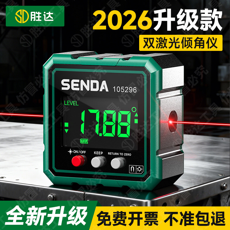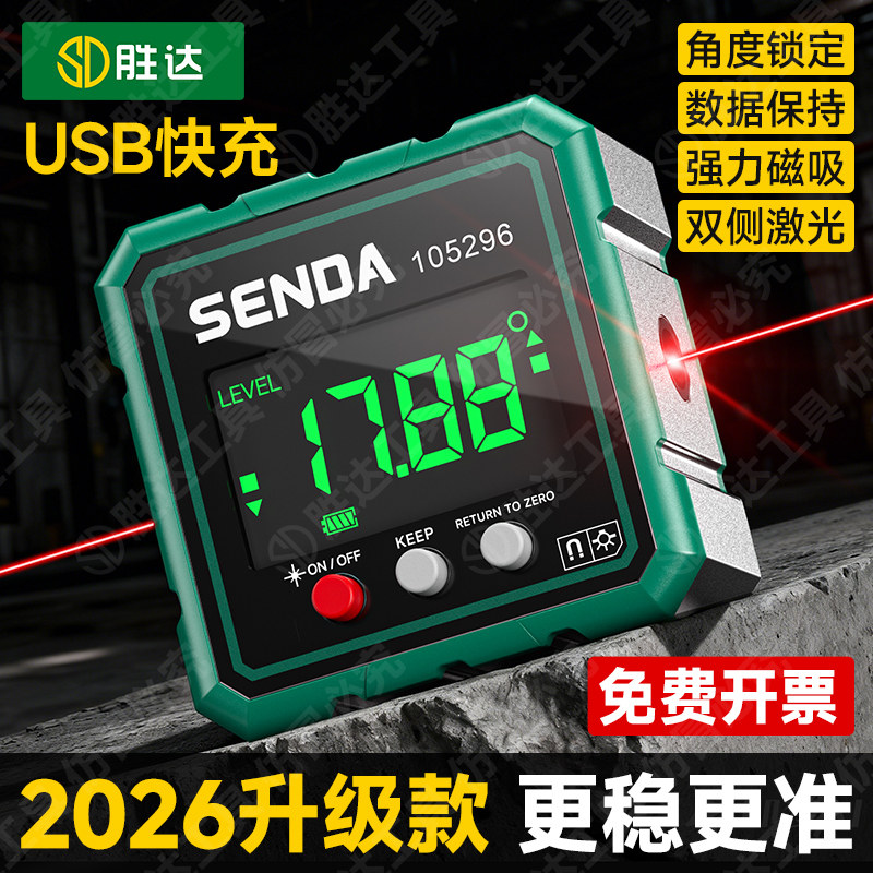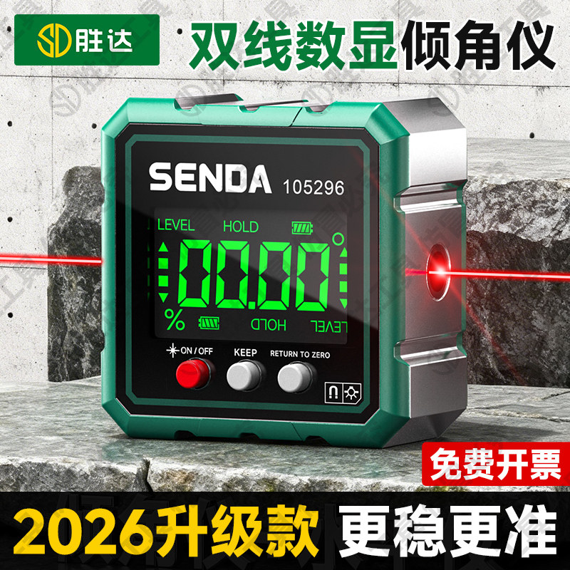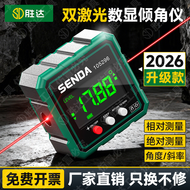 胜达高精度数显倾角仪激光带磁水平仪多功能斜率坡度角度尺测量仪
