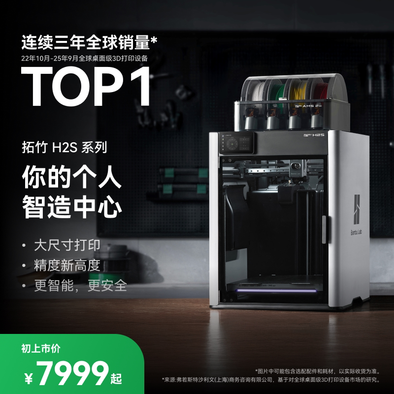【非国补 慎拍】拓竹新品H2S 3D打印机器大尺寸激光雕刻模切画笔多功能高精度高速智能多色旗舰系列