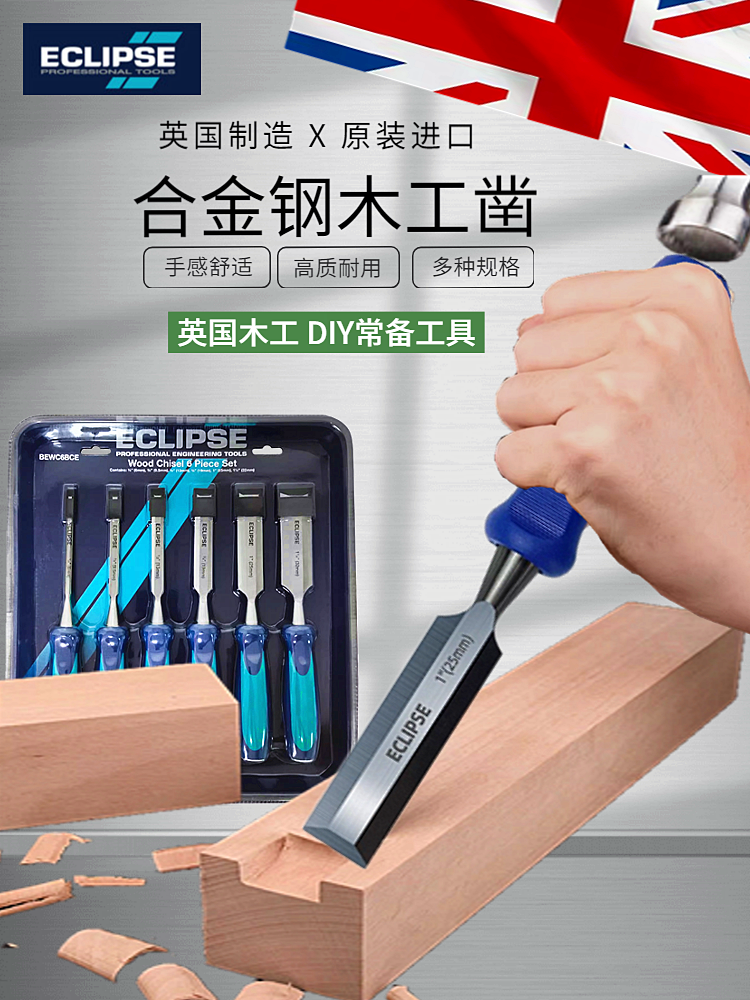 英国ECLIPSE木工凿子特钢凿刀木凿套装铲木圆半圆扁铲刀木匠工具