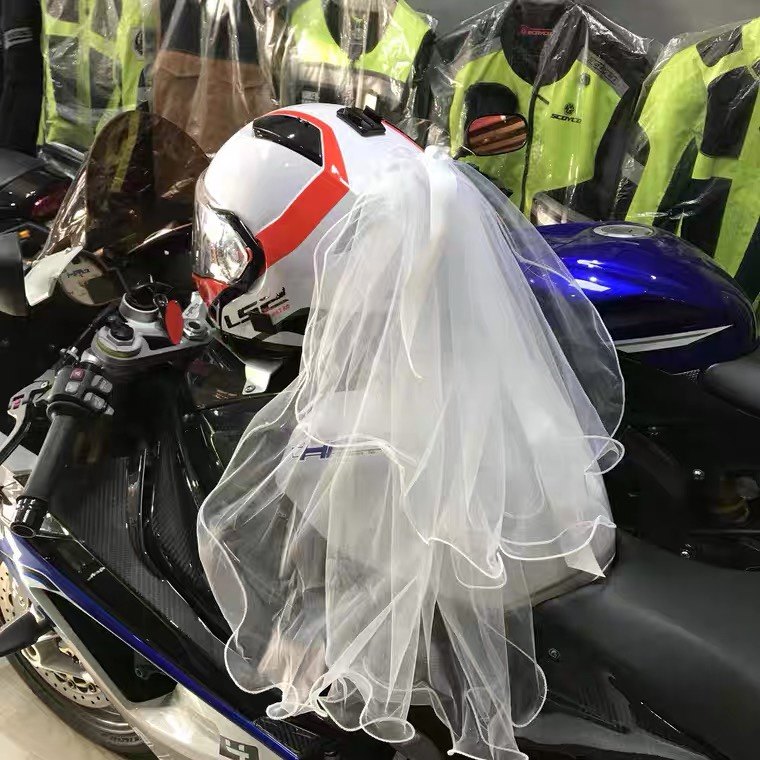摩托车头盔装饰品头纱机车婚礼蝴蝶结小配件个性头饰改装配饰女骑