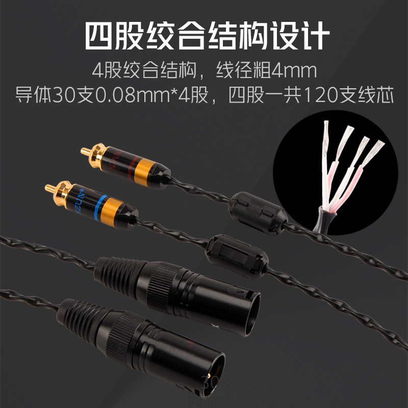 日本古河纯银莲花转卡农音频线RCA头转XLR公母平衡线发烧级信号线